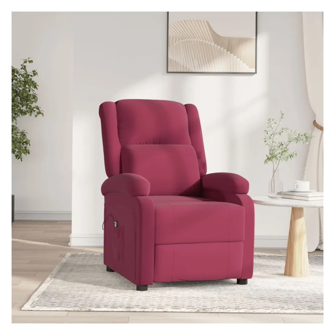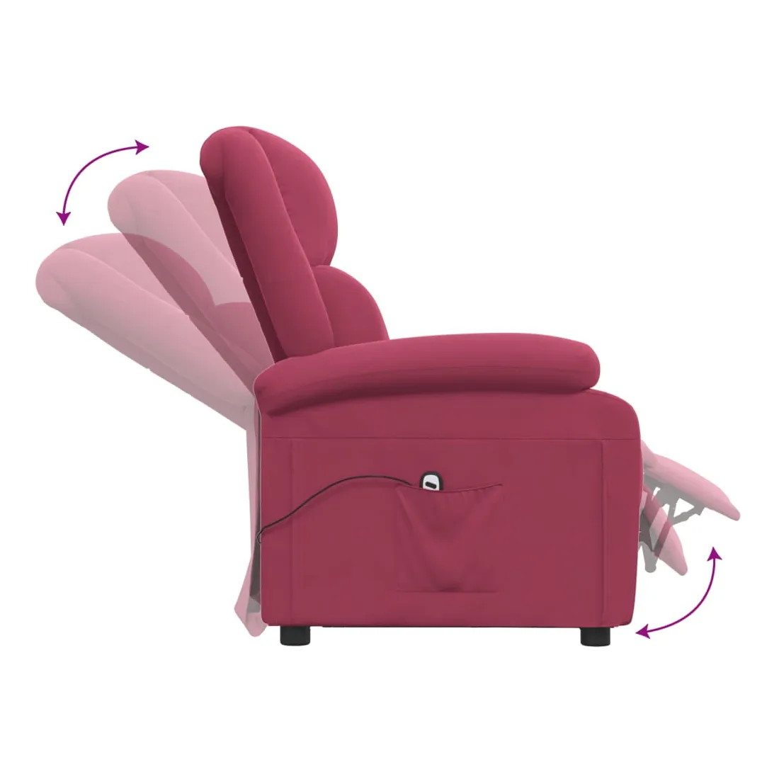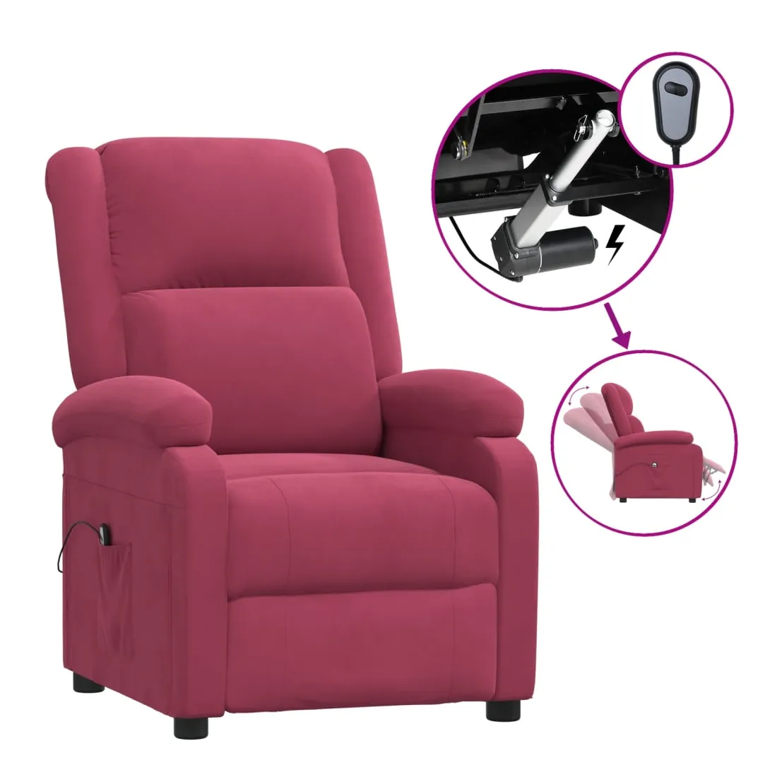 Asseyez-vous et détendez-vous dans ce fauteuil inclinable électrique très confortable ! Fonction d'inclinaison électrique : le fauteuil inclinable est équipé d'un moteur électrique pour la fonction d'inclinaison. Il offre 3 positions d'inclinaison et vous pouvez facilement régler le dossier et le repose-pied à l'aide de la commande manuelle à 2 boutons incluse, en fonction de votre confort.Expérience d'assise confortable : le siège, le dossier et les larges accoudoirs rembourrés épais recouverts de velours procurent une sensation confortable et chaleureuse, vous faisant vous sentir enlacé lorsque vous êtes assis. Le velours est un tissu doux et confortable qui est agréable sur la peau.Cadre solide et stable : le cadre en bois et en métal offre une structure solide et une grande stabilité. Ce fauteuil inclinable est confortable et durable.