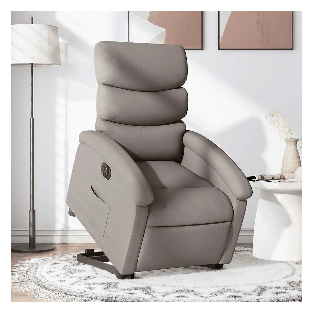 Asseyez-vous et détendez-vous dans ce fauteuil inclinable électrique très confortable ! Fonction de levage électrique : ce fauteuil inclinable pour personnes âgées est équipé d'un moteur électrique pour la fonction de levage. Grâce à la fonction qui pousse toute la chaise vers le haut, vous pouvez facilement vous tenir debout sans stresser votre dos et vos genoux en appuyant simplement sur le bouton.Fonction d'inclinaison électrique : ce fauteuil inclinable est également équipé d'un moteur électrique qui permet de régler automatiquement le repose-pied et le dossier dans n'importe quelle position, selon votre confort, en appuyant simplement sur le bouton situé sur le côté du fauteuil. Cette fonction permet une inclinaison maximale de 135 degrés. En outre, le dossier peut revenir automatiquement à sa position d'origine par une simple pression sur le bouton.Expérience d'assise confortable : le siège, le dossier et les larges accoudoirs bien rembourrés recouverts de tissu procurent une sensation confortable et chaleureuse, vous permettant de vous sentir enveloppé lorsque vous êtes assis. Le tissu présente un aspect simple et épuré et est respirant et durable.Poche latérale pratique : ce fauteuil est doté d'une poche latérale pour vous permettre de garder vos objets essentiels à portée de main.Cadre solide et stable : le cadre en bois et en métal offre une structure solide et une grande stabilité. Ce fauteuil inclinable est confortable et durable.