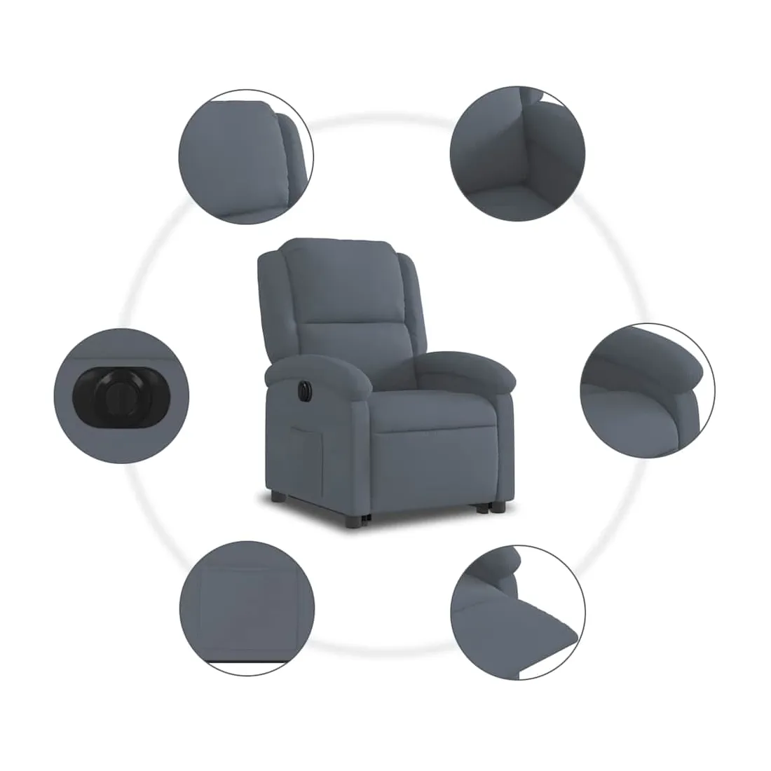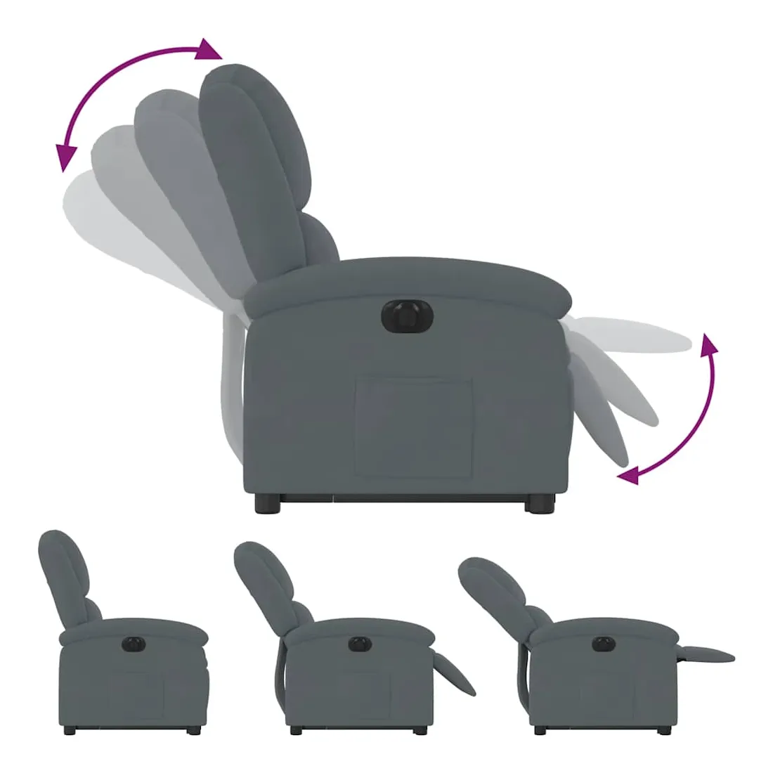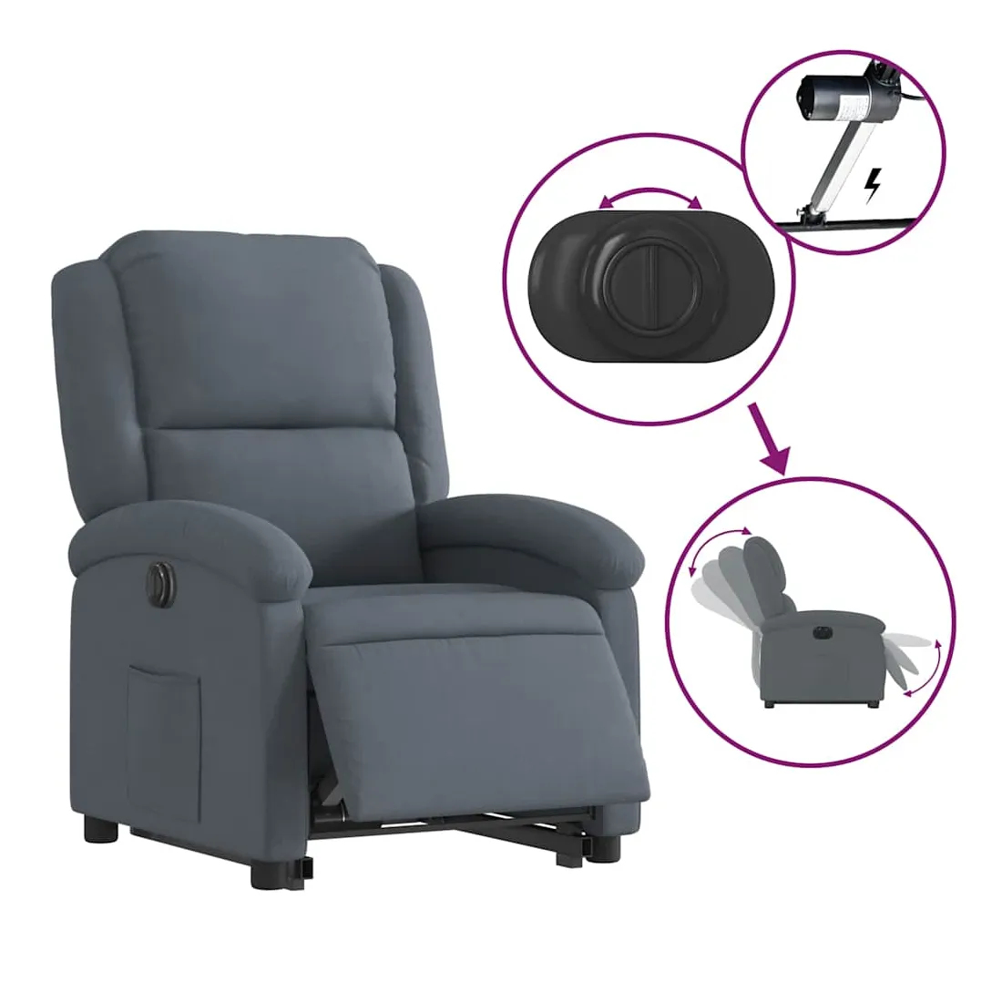 Asseyez-vous et détendez-vous dans ce fauteuil inclinable électrique très confortable ! Fonction de levage électrique : ce fauteuil inclinable pour personnes âgées est équipé d'un moteur électrique pour la fonction de levage. Grâce à la fonction qui pousse toute la chaise vers le haut, vous pouvez facilement vous tenir debout sans stresser votre dos et vos genoux en appuyant simplement sur le bouton.Fonction d'inclinaison électrique : ce fauteuil inclinable est également équipé d'un moteur électrique qui permet de régler automatiquement le repose-pied et le dossier dans n'importe quelle position, selon votre confort, en appuyant simplement sur le bouton situé sur le côté du fauteuil. Cette fonction permet une inclinaison maximale de 135 degrés. En outre, le dossier peut revenir automatiquement à sa position d'origine par une simple pression sur le bouton.Expérience d'assise confortable : le siège, le dossier et les larges accoudoirs rembourrés épais recouverts de velours procurent une sensation confortable et chaleureuse, vous faisant vous sentir enlacé lorsque vous êtes assis. Le velours est un tissu doux et confortable qui est agréable sur la peau.Poche latérale pratique : ce fauteuil est doté d'une poche latérale pour vous permettre de garder vos objets essentiels à portée de main.Cadre solide et stable : le cadre en bois et en métal offre une structure solide et une grande stabilité. Ce fauteuil inclinable est confortable et durable.