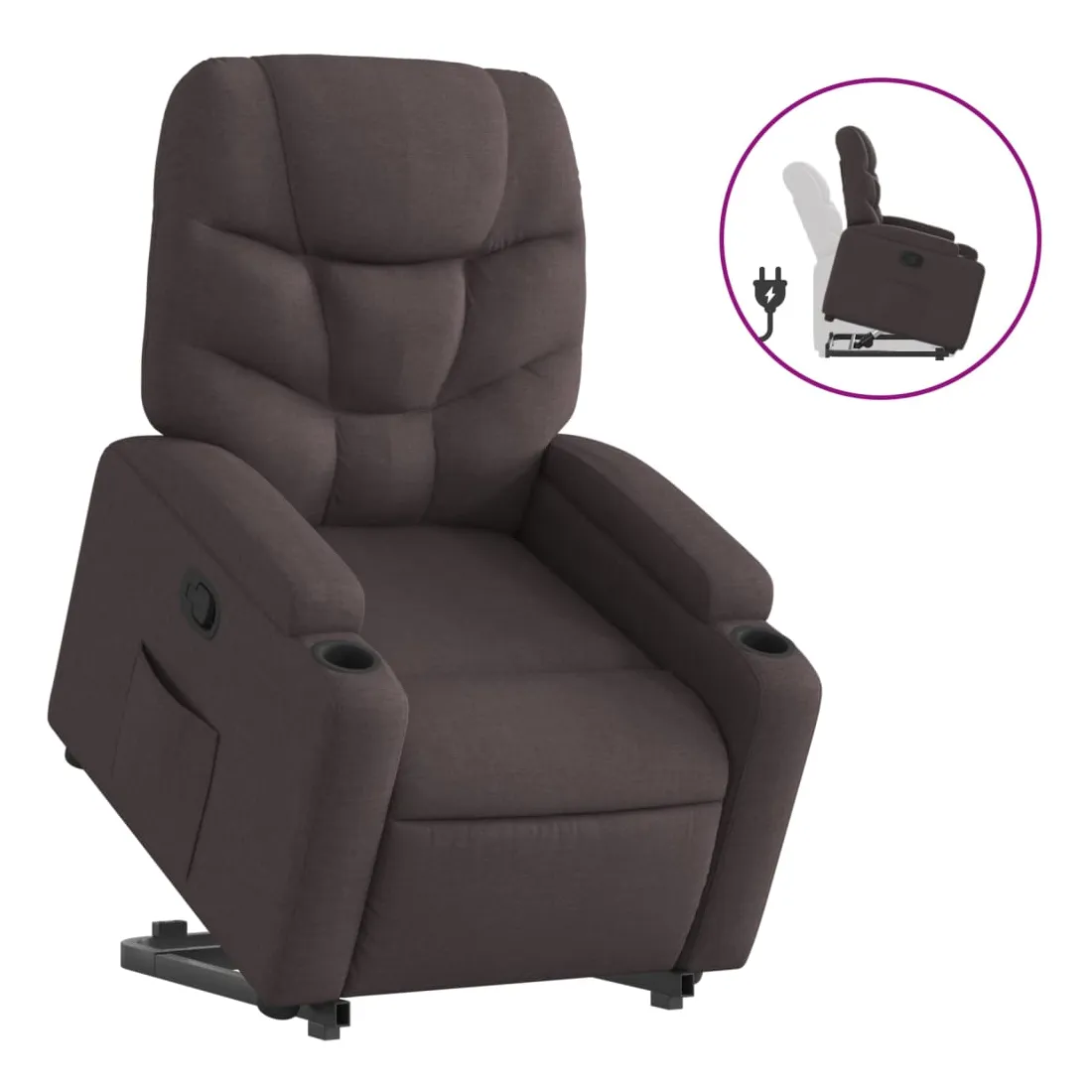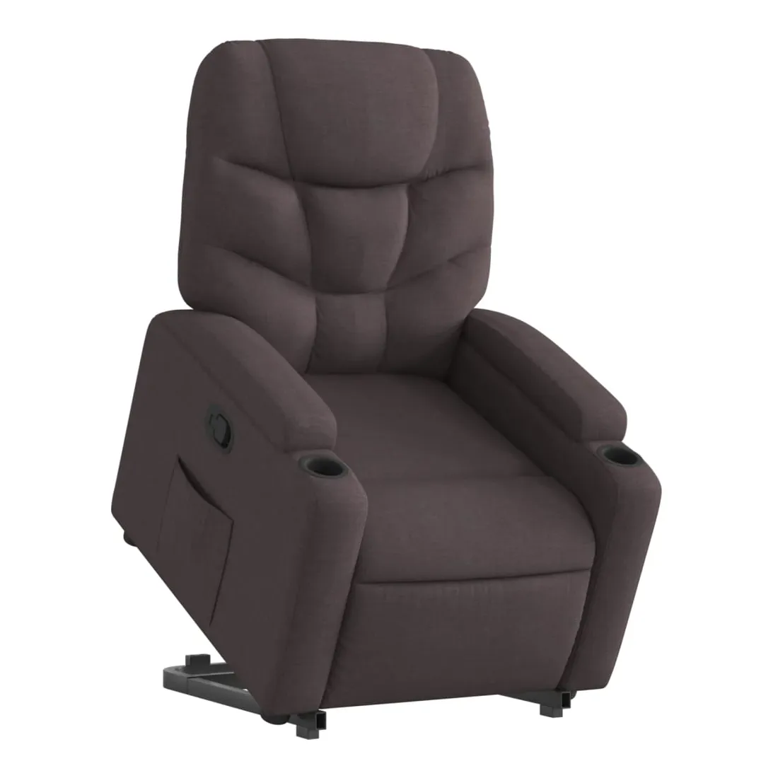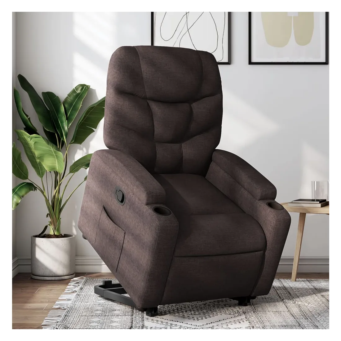 Asseyez-vous et détendez-vous dans ce fauteuil inclinable très confortable ! Fonction de levage électrique : ce fauteuil inclinable pour personnes âgées est équipé d'un moteur électrique pour la fonction de levage. Grâce à la fonction qui pousse toute la chaise vers le haut, vous pouvez facilement vous tenir debout sans stresser votre dos et vos genoux en appuyant simplement sur le bouton.Fonction d'inclinaison manuelle : ce fauteuil inclinable est doté d'une poignée du côté droit. Vous pouvez régler manuellement le repose-pieds et le dossier dans n'importe quelle position selon votre confort en tirant simplement sur la poignée. Cette fonction permet une inclinaison maximale de 135 degrés. De plus, le dossier peut revenir rapidement à sa position d'origine en tirant simplement sur la poignée.Expérience d'assise confortable : le siège, le dossier et les larges accoudoirs bien rembourrés recouverts de tissu procurent une sensation confortable et chaleureuse, vous permettant de vous sentir enveloppé lorsque vous êtes assis. Le tissu présente un aspect simple et épuré et est respirant et durable.Porte-gobelets et poche latérale pratiques : ce fauteuil dispose de deux porte-gobelets pratiques pour vos boissons et d'une poche latérale pour garder vos objets essentiels à portée de main.Cadre solide et stable : le cadre en bois et en métal offre une structure solide et une grande stabilité. Ce fauteuil inclinable est confortable et durable.