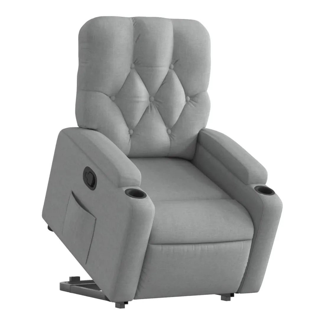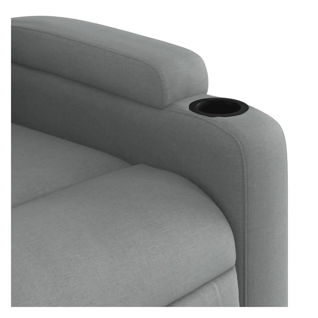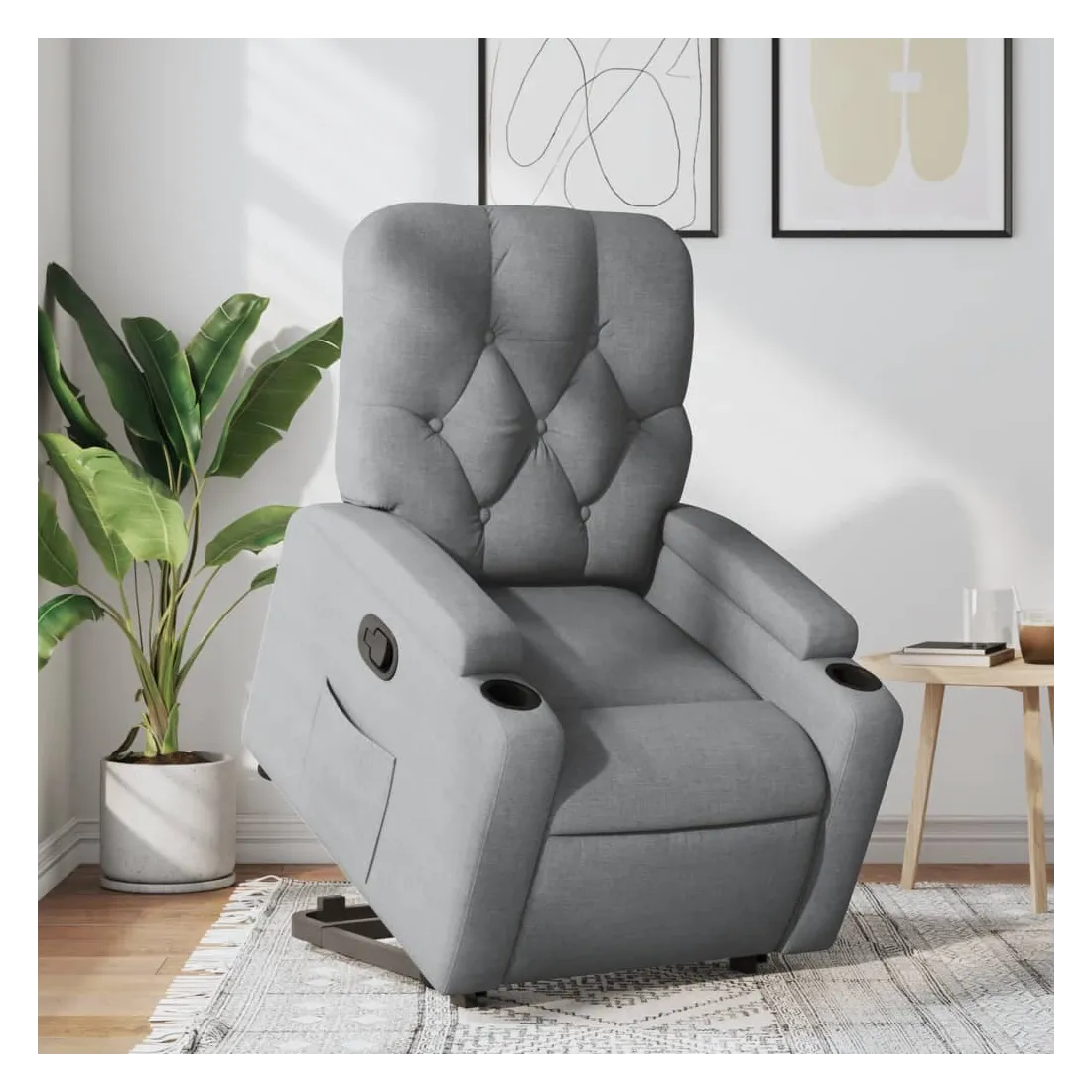 Asseyez-vous et détendez-vous dans ce fauteuil inclinable très confortable ! Fonction de levage électrique : ce fauteuil inclinable pour personnes âgées est équipé d'un moteur électrique pour la fonction de levage. Grâce à la fonction qui pousse toute la chaise vers le haut, vous pouvez facilement vous tenir debout sans stresser votre dos et vos genoux en appuyant simplement sur le bouton.Fonction d'inclinaison manuelle : ce fauteuil inclinable est doté d'une poignée du côté droit. Vous pouvez régler manuellement le repose-pieds et le dossier dans n'importe quelle position selon votre confort en tirant simplement sur la poignée. Cette fonction permet une inclinaison maximale de 135 degrés. De plus, le dossier peut revenir rapidement à sa position d'origine en tirant simplement sur la poignée.Expérience d'assise confortable : le siège, le dossier et les larges accoudoirs bien rembourrés recouverts de tissu procurent une sensation confortable et chaleureuse, vous permettant de vous sentir enveloppé lorsque vous êtes assis. Le tissu présente un aspect simple et épuré et est respirant et durable.Porte-gobelets et poche latérale pratiques : ce fauteuil dispose de deux porte-gobelets pratiques pour vos boissons et d'une poche latérale pour garder vos objets essentiels à portée de main.Cadre solide et stable : le cadre en bois et en métal offre une structure solide et une grande stabilité. Ce fauteuil inclinable est confortable et durable.
