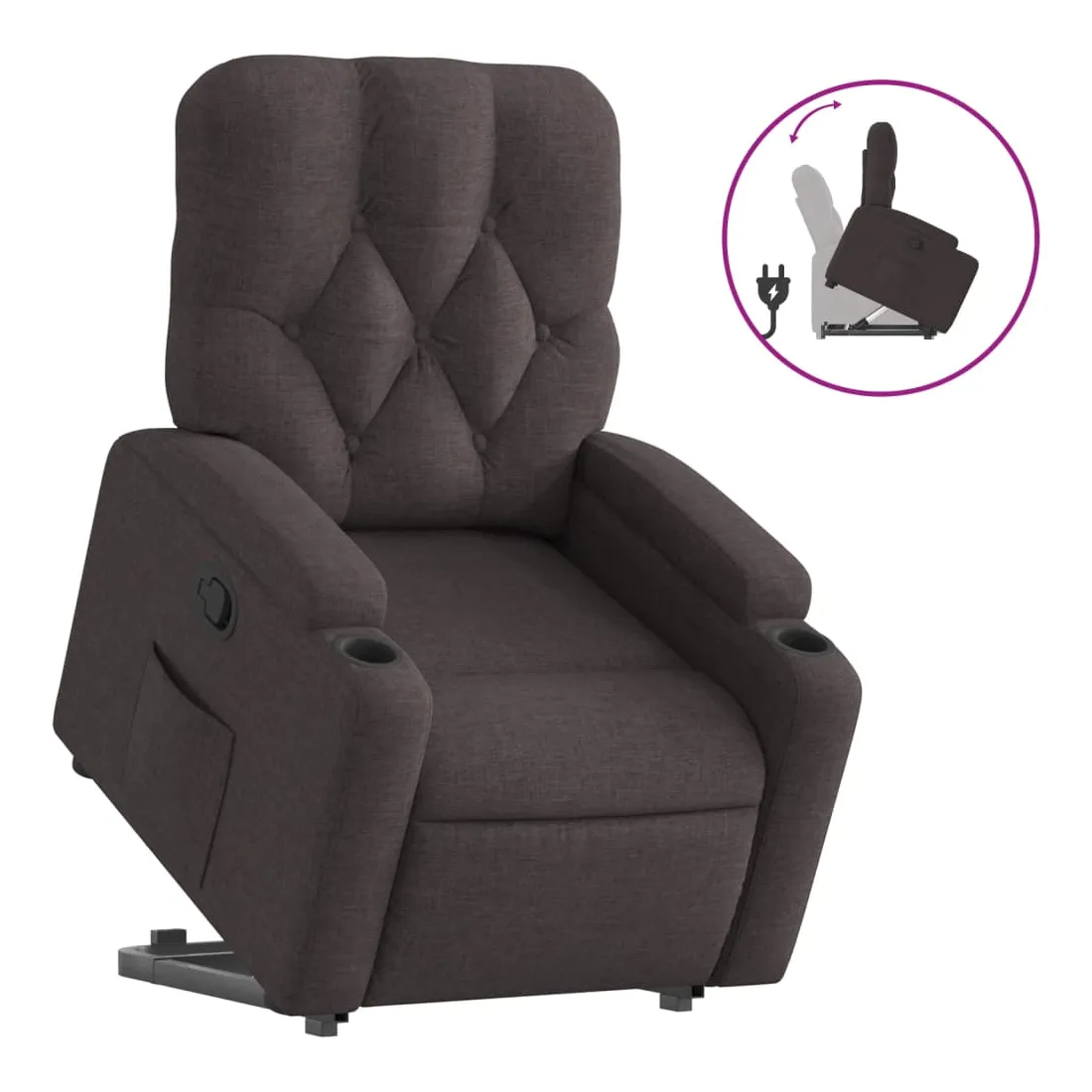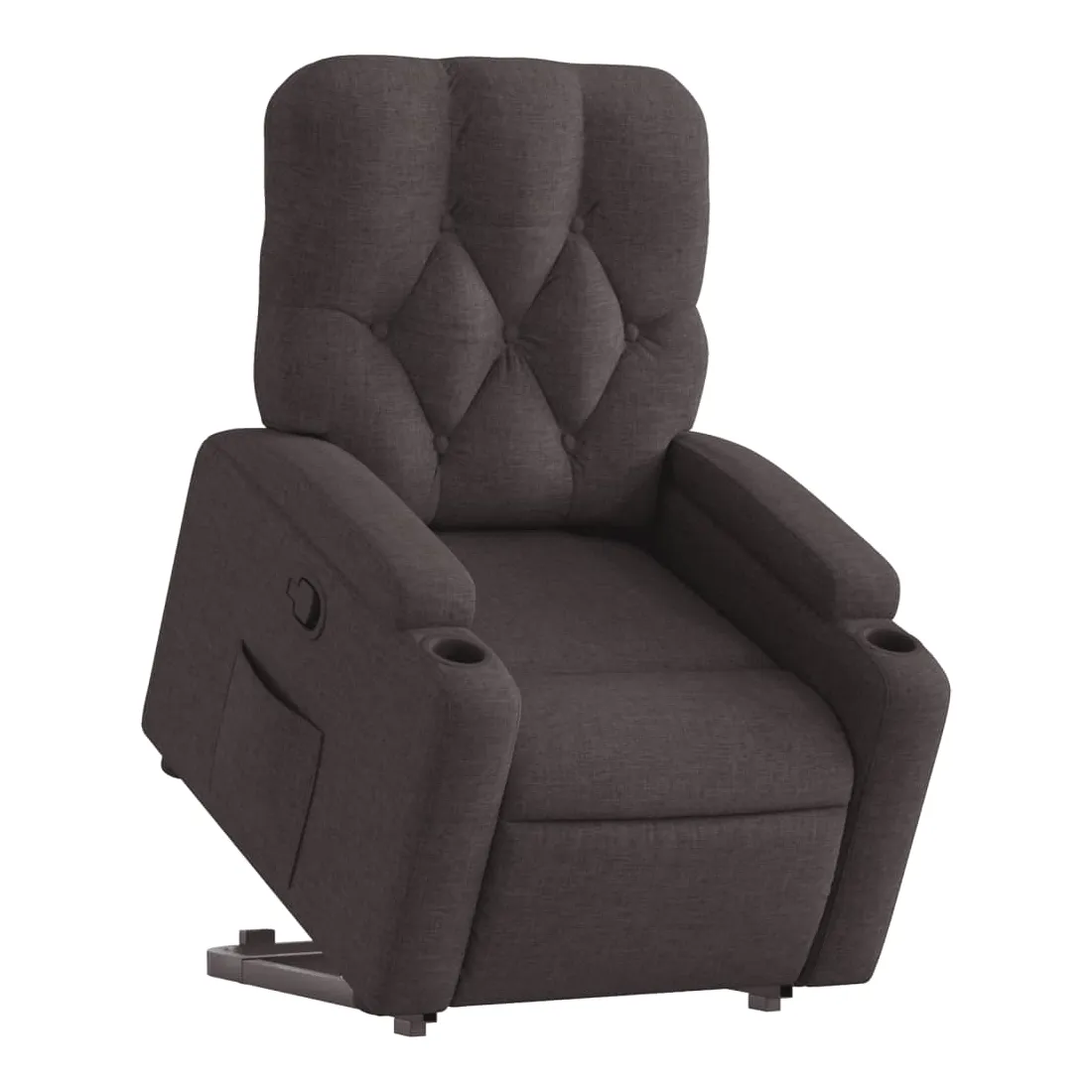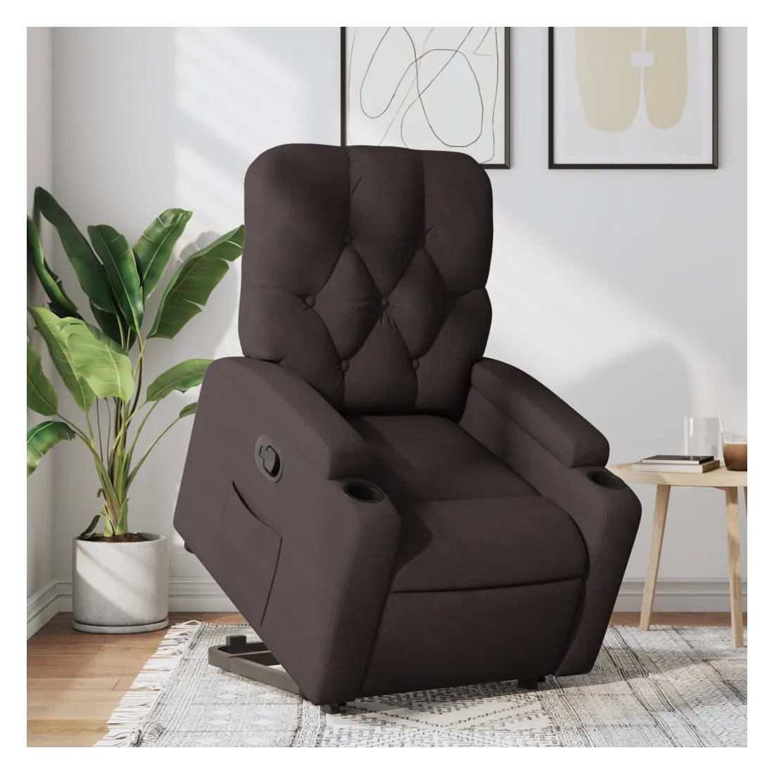 Asseyez-vous et détendez-vous dans ce fauteuil inclinable très confortable ! Fonction de levage électrique : ce fauteuil inclinable pour personnes âgées est équipé d'un moteur électrique pour la fonction de levage. Grâce à la fonction qui pousse toute la chaise vers le haut, vous pouvez facilement vous tenir debout sans stresser votre dos et vos genoux en appuyant simplement sur le bouton.Fonction d'inclinaison manuelle : ce fauteuil inclinable est doté d'une poignée du côté droit. Vous pouvez régler manuellement le repose-pieds et le dossier dans n'importe quelle position selon votre confort en tirant simplement sur la poignée. Cette fonction permet une inclinaison maximale de 135 degrés. De plus, le dossier peut revenir rapidement à sa position d'origine en tirant simplement sur la poignée.Expérience d'assise confortable : le siège, le dossier et les larges accoudoirs bien rembourrés recouverts de tissu procurent une sensation confortable et chaleureuse, vous permettant de vous sentir enveloppé lorsque vous êtes assis. Le tissu présente un aspect simple et épuré et est respirant et durable.Porte-gobelets et poche latérale pratiques : ce fauteuil dispose de deux porte-gobelets pratiques pour vos boissons et d'une poche latérale pour garder vos objets essentiels à portée de main.Cadre solide et stable : le cadre en bois et en métal offre une structure solide et une grande stabilité. Ce fauteuil inclinable est confortable et durable.