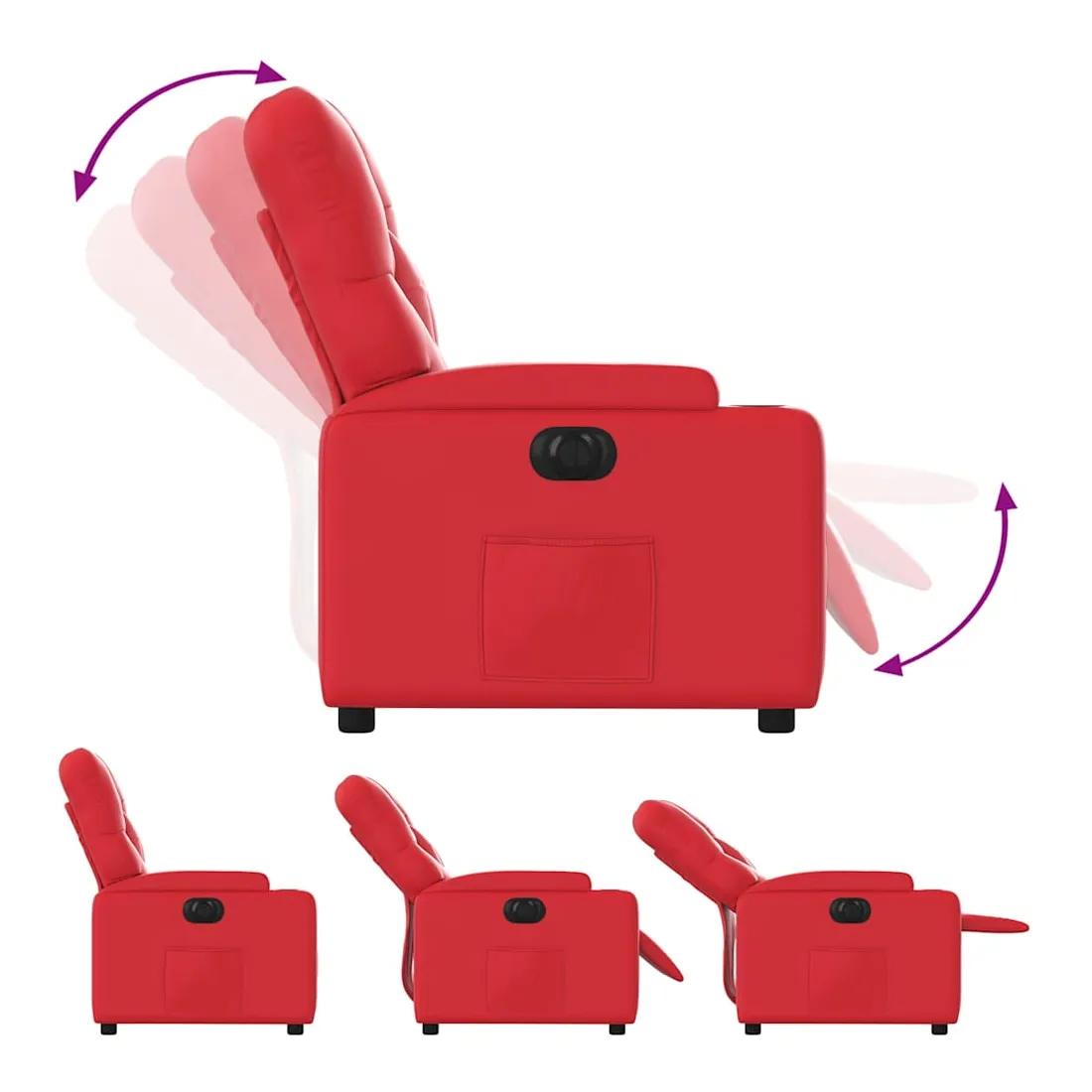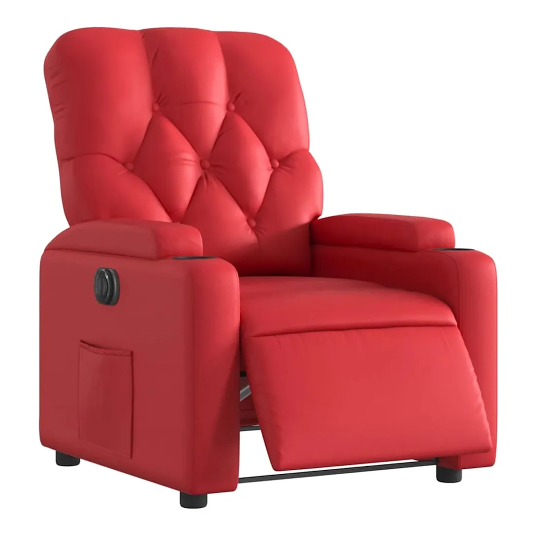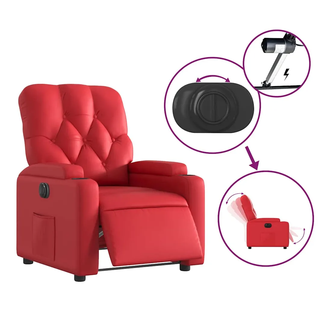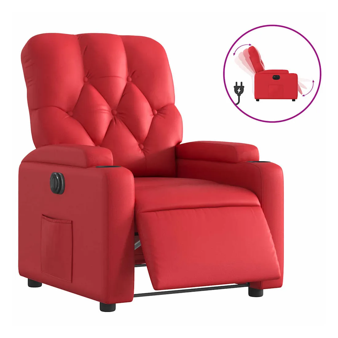 Asseyez-vous et détendez-vous dans ce fauteuil inclinable électrique très confortable ! Fonction d'inclinaison électrique : ce fauteuil inclinable est équipé d'un moteur électrique qui permet de régler automatiquement le repose-pied et le dossier dans n'importe quelle position, selon votre confort, en appuyant simplement sur le bouton situé sur le côté du fauteuil. Cette fonction permet une inclinaison maximale de 135 degrés. En outre, le dossier peut revenir automatiquement à sa position d'origine par une simple pression sur le bouton.Expérience de siège confortable : le siège, le dossier et les larges accoudoirs rembourrés épais recouverts de similicuir procurent une sensation confortable, vous faisant vous sentir enlacé lorsque vous êtes assis. Le similicuir est un matériau très résistant. Il est résistant aux taches, ce qui le rend facile à nettoyer avec un chiffon humide. La surface lisse donne également un aspect luxueux et la beauté du cuir véritable.Poche latérale pratique : ce fauteuil est doté d'une poche latérale pour vous permettre de garder vos objets essentiels à portée de main.Cadre solide et stable : le cadre en bois et en métal offre une structure solide et une grande stabilité. Ce fauteuil inclinable est confortable et durable.