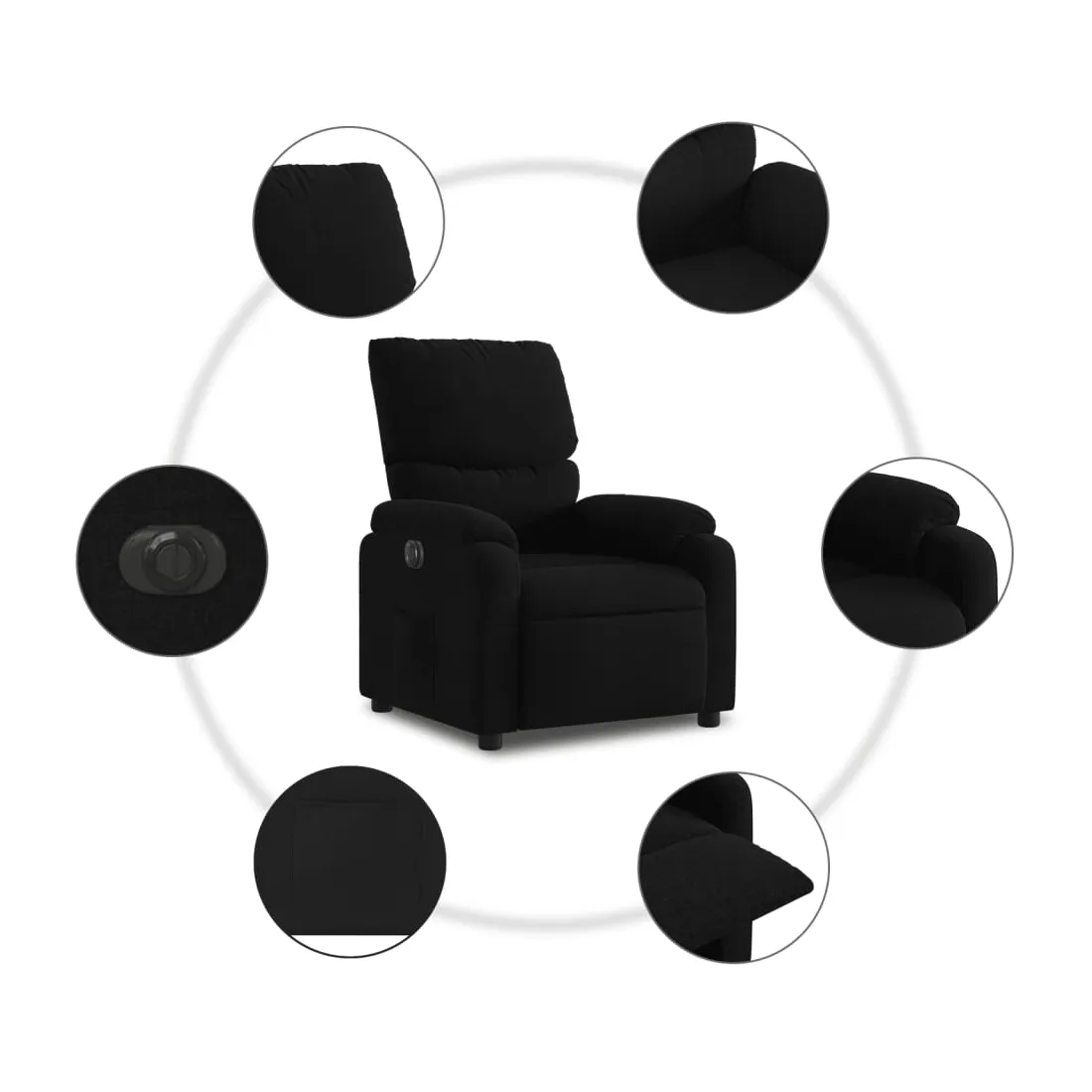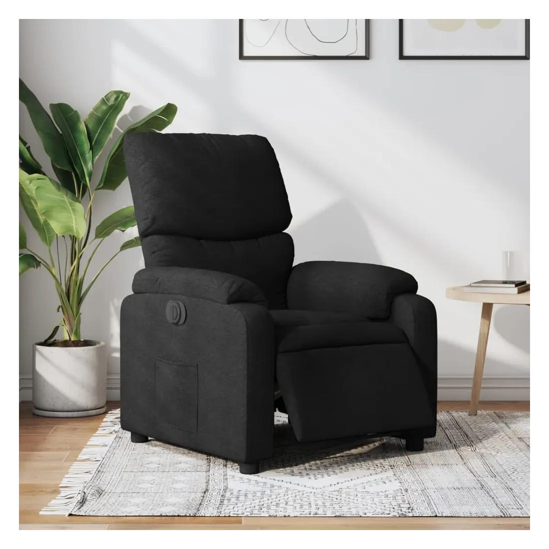 Asseyez-vous et détendez-vous dans ce fauteuil inclinable électrique très confortable ! Fonction d'inclinaison électrique : ce fauteuil inclinable est équipé d'un moteur électrique qui permet de régler automatiquement le repose-pied et le dossier dans n'importe quelle position, selon votre confort, en appuyant simplement sur le bouton situé sur le côté du fauteuil. Cette fonction permet une inclinaison maximale de 135 degrés. En outre, le dossier peut revenir automatiquement à sa position d'origine par une simple pression sur le bouton.Expérience d'assise confortable : le siège, le dossier et les larges accoudoirs bien rembourrés recouverts de tissu procurent une sensation confortable et chaleureuse, vous permettant de vous sentir enveloppé lorsque vous êtes assis. Le tissu présente un aspect simple et épuré et est respirant et durable.Poche latérale pratique : ce fauteuil est doté d'une poche latérale pour vous permettre de garder vos objets essentiels à portée de main.Cadre solide et stable : le cadre en bois et en métal offre une structure solide et une grande stabilité. Ce fauteuil inclinable est confortable et durable.