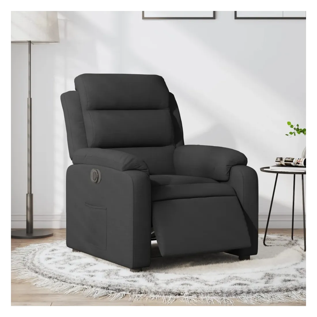 Asseyez-vous et détendez-vous dans ce fauteuil inclinable électrique très confortable ! Fonction d'inclinaison électrique : ce fauteuil inclinable est équipé d'un moteur électrique qui permet de régler automatiquement le repose-pied et le dossier dans n'importe quelle position, selon votre confort, en appuyant simplement sur le bouton situé sur le côté du fauteuil. Cette fonction permet une inclinaison maximale de 135 degrés. En outre, le dossier peut revenir automatiquement à sa position d'origine par une simple pression sur le bouton.Expérience d'assise confortable : le siège, le dossier et les larges accoudoirs bien rembourrés recouverts de tissu procurent une sensation confortable et chaleureuse, vous permettant de vous sentir enveloppé lorsque vous êtes assis. Le tissu présente un aspect simple et épuré et est respirant et durable.Poche latérale pratique : ce fauteuil est doté d'une poche latérale pour vous permettre de garder vos objets essentiels à portée de main.Cadre solide et stable : le cadre en bois et en métal offre une structure solide et une grande stabilité. Ce fauteuil inclinable est confortable et durable.
