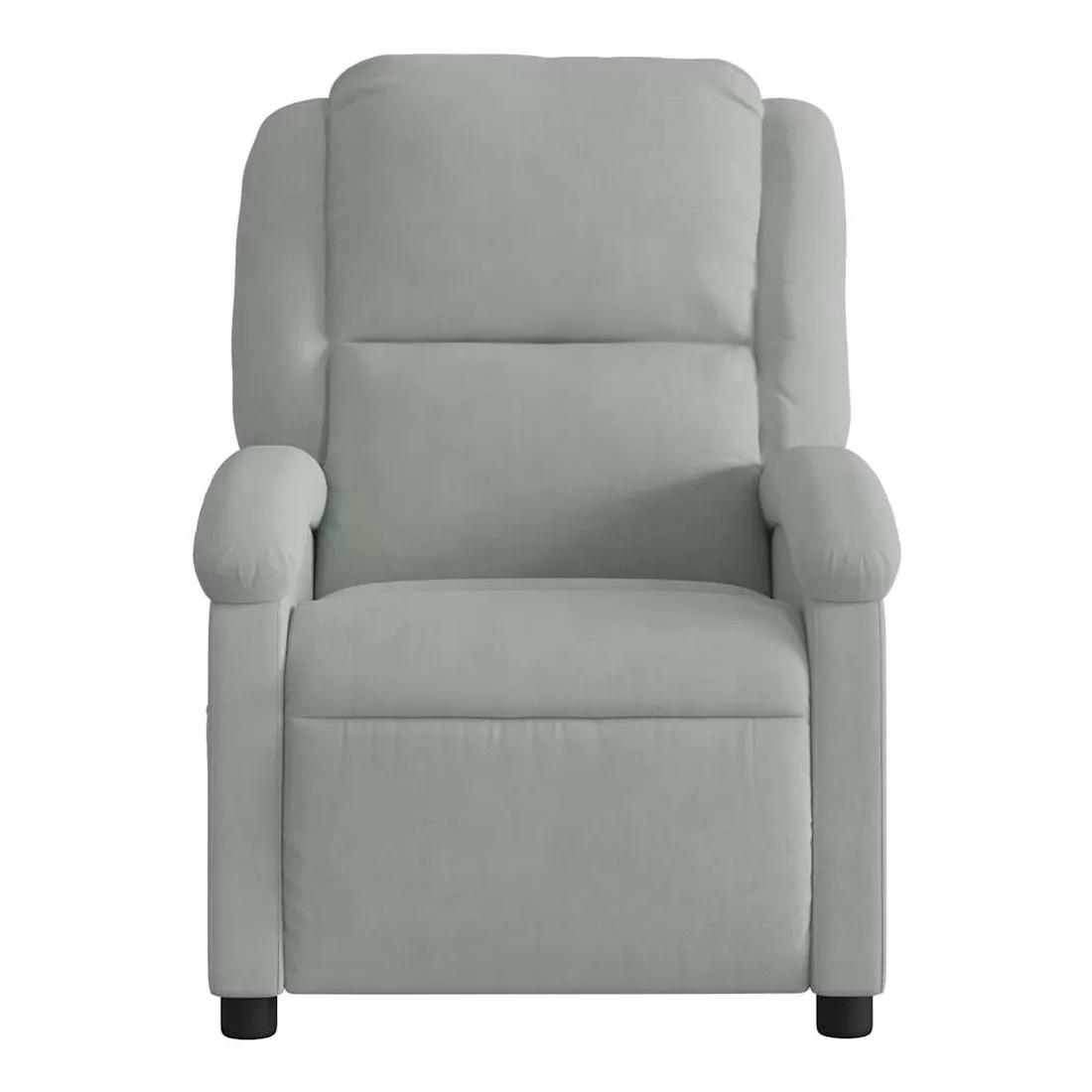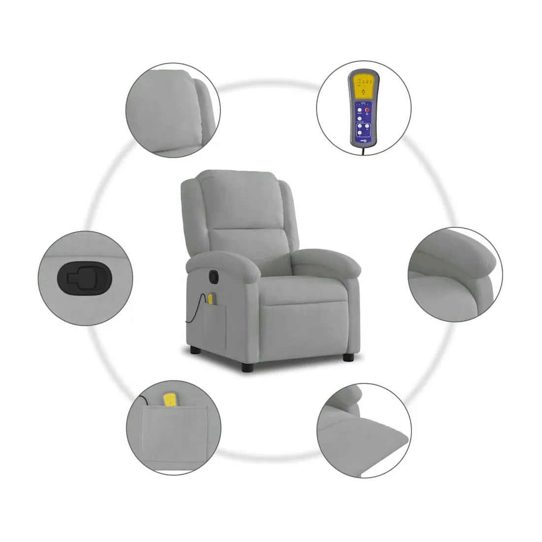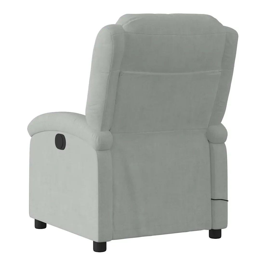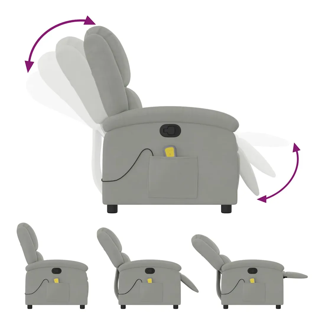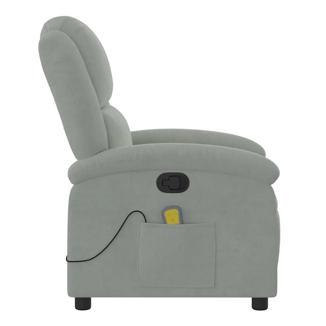 Asseyez-vous et détendez-vous dans ce fauteuil inclinable de massage très confortable ! Fonction d'inclinaison manuelle : ce fauteuil inclinable est doté d'une poignée du côté droit. Vous pouvez régler manuellement le repose-pieds et le dossier dans n'importe quelle position selon votre confort en tirant simplement sur la poignée. Cette fonction permet une inclinaison maximale de 135 degrés. De plus, le dossier peut revenir rapidement à sa position d'origine en tirant simplement sur la poignée.Fonction de vibration : les 6 points de massage vous permettent de faire l'expérience d'un massage mieux ciblé. De plus, la télécommande incluse vous permet de choisir différents programmes de massage. La fonction de massage est alimentée par le connecteur USB, mais la source d'alimentation USB 5V certifiée n'est pas incluse.Expérience d'assise confortable : le siège, le dossier et les larges accoudoirs rembourrés épais recouverts de velours procurent une sensation confortable et chaleureuse, vous faisant vous sentir enlacé lorsque vous êtes assis. Le velours est un tissu doux et confortable qui est agréable sur la peau.Poche latérale pratique : ce fauteuil est doté d'une poche latérale pour ranger votre télécommande ou garder vos objets essentiels à portée de main.Cadre solide et stable : le cadre en bois et en métal offre une structure solide et une grande stabilité. Ce fauteuil inclinable est confortable et durable.