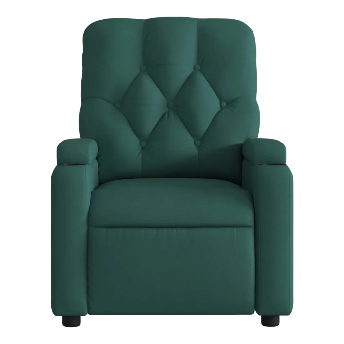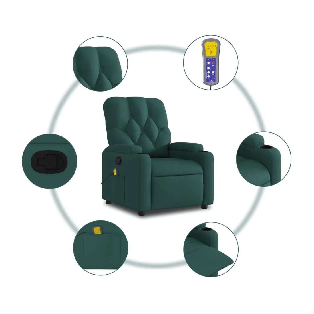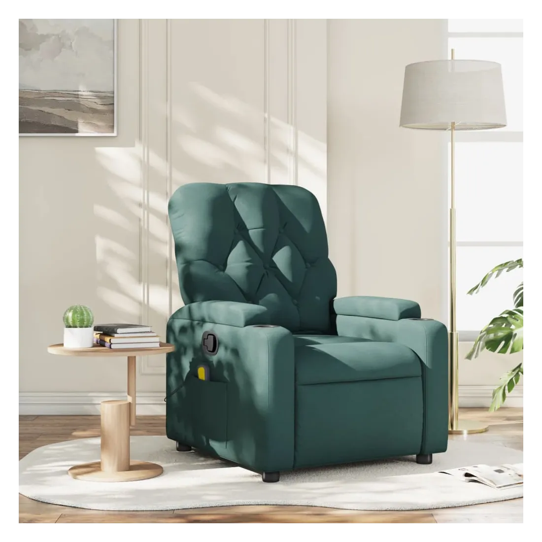 Asseyez-vous et détendez-vous dans ce fauteuil inclinable de massage très confortable ! Fonction d'inclinaison manuelle : ce fauteuil inclinable est doté d'une poignée du côté droit. Vous pouvez régler manuellement le repose-pieds et le dossier dans n'importe quelle position selon votre confort en tirant simplement sur la poignée. Cette fonction permet une inclinaison maximale de 135 degrés. De plus, le dossier peut revenir rapidement à sa position d'origine en tirant simplement sur la poignée.Fonction de vibration : les 6 points de massage vous permettent de faire l'expérience d'un massage mieux ciblé. De plus, la télécommande incluse vous permet de choisir différents programmes de massage. La fonction de massage est alimentée par le connecteur USB, mais la source d'alimentation USB 5V certifiée n'est pas incluse.Expérience d'assise confortable : le siège, le dossier et les larges accoudoirs bien rembourrés recouverts de tissu procurent une sensation confortable et chaleureuse, vous permettant de vous sentir enveloppé lorsque vous êtes assis. Le tissu présente un aspect simple et épuré et est respirant et durable.Porte-gobelets et poche latérale pratiques : ce fauteuil dispose de deux porte-gobelets pratiques pour vos boissons et d'une poche latérale pour votre télécommande ou pour garder vos objets essentiels à portée de main.Cadre solide et stable : le cadre en bois et en métal offre une structure solide et une grande stabilité. Ce fauteuil inclinable est confortable et durable.