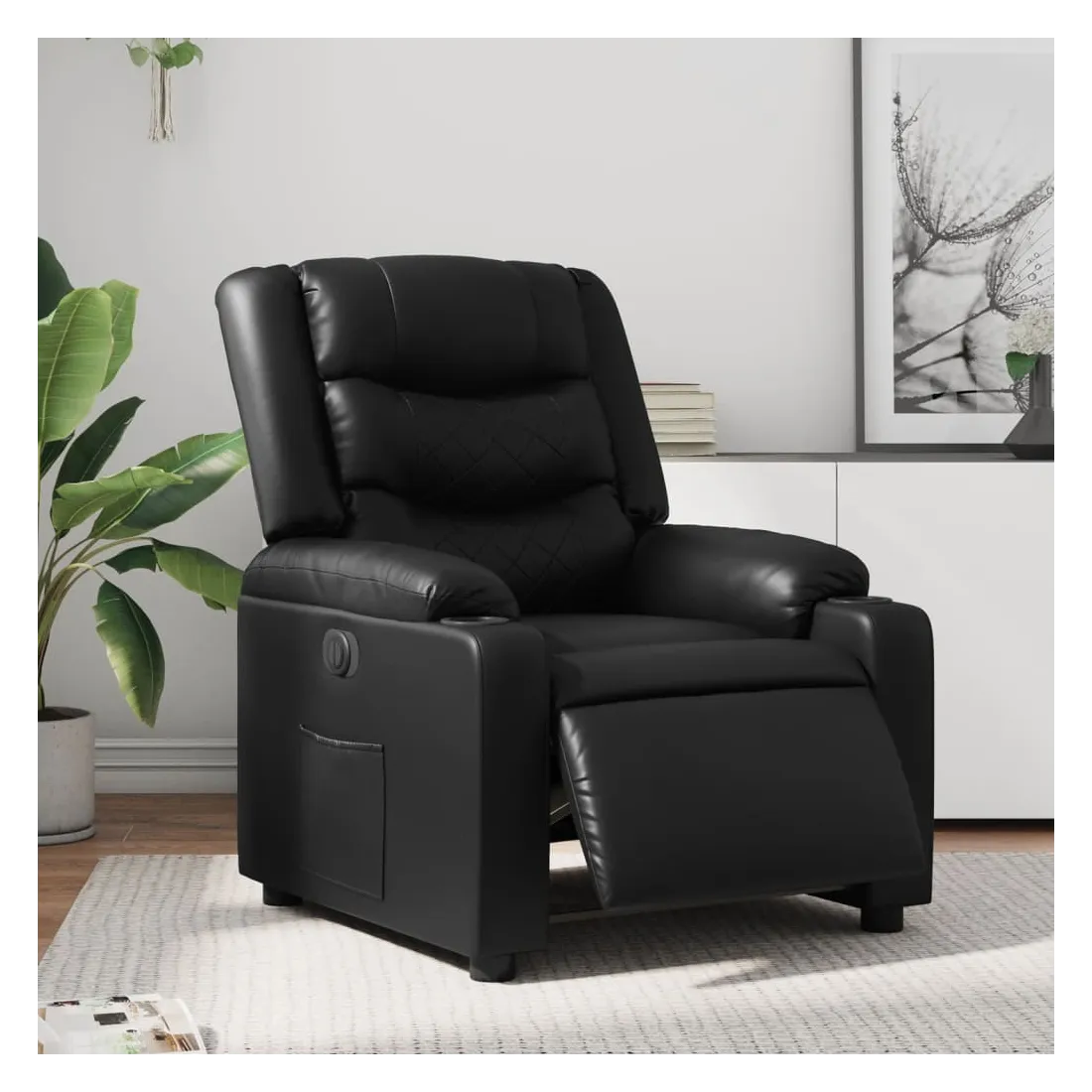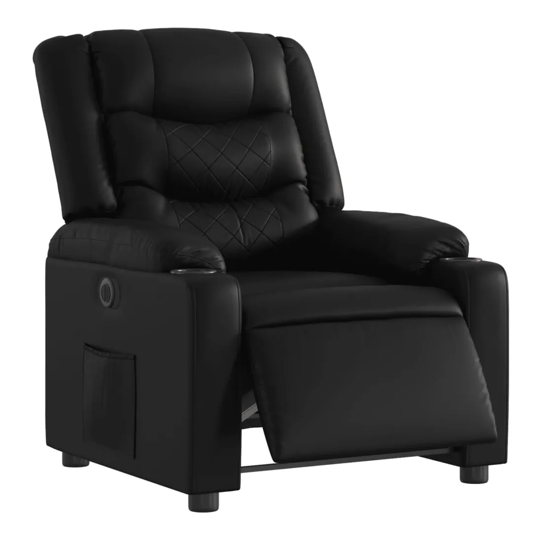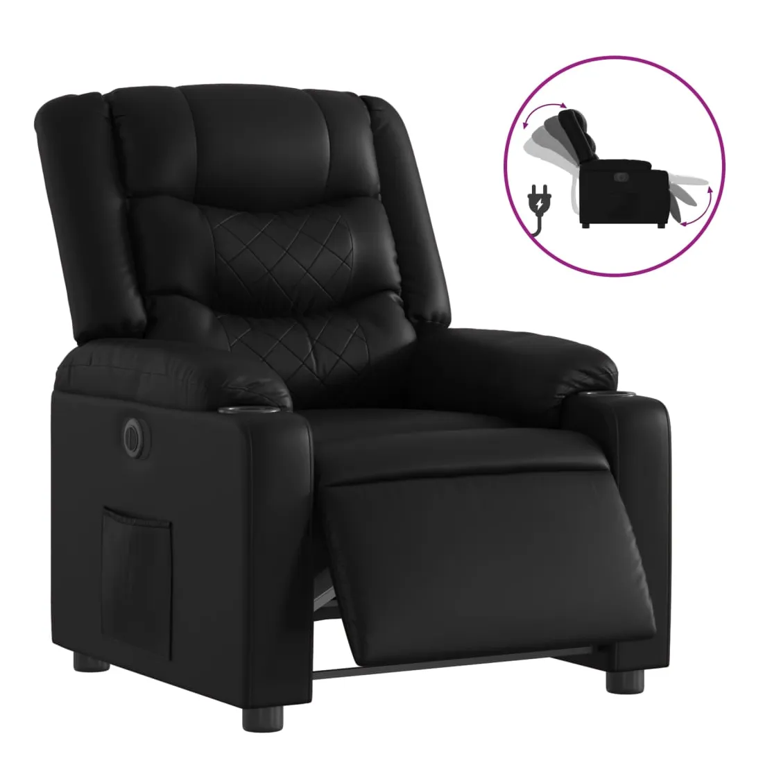 Asseyez-vous et détendez-vous dans ce fauteuil inclinable électrique très confortable ! Fonction d'inclinaison électrique : ce fauteuil inclinable est équipé d'un moteur électrique qui permet de régler automatiquement le repose-pied et le dossier dans n'importe quelle position, selon votre confort, en appuyant simplement sur le bouton situé sur le côté du fauteuil. Cette fonction permet une inclinaison maximale de 135 degrés. En outre, le dossier peut revenir automatiquement à sa position d'origine par une simple pression sur le bouton.Expérience de siège confortable : le siège, le dossier et les larges accoudoirs rembourrés épais recouverts de similicuir procurent une sensation confortable, vous faisant vous sentir enlacé lorsque vous êtes assis. Le similicuir est un matériau très résistant. Il est résistant aux taches, ce qui le rend facile à nettoyer avec un chiffon humide. La surface lisse donne également un aspect luxueux et la beauté du cuir véritable.Poche latérale pratique : ce fauteuil est doté d'une poche latérale pour vous permettre de garder vos objets essentiels à portée de main.Cadre solide et stable : le cadre en bois et en métal offre une structure solide et une grande stabilité. Ce fauteuil inclinable est confortable et durable.