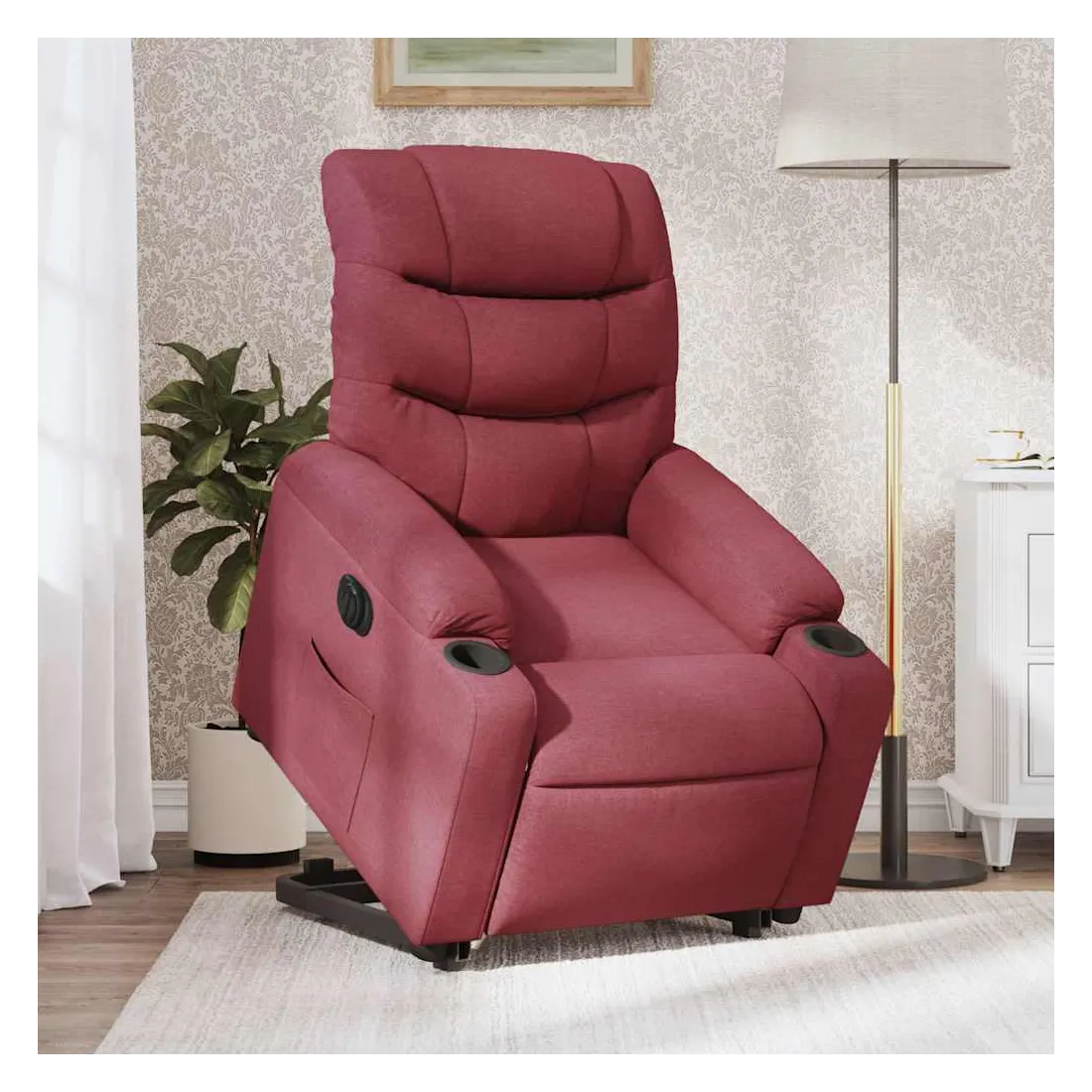 Asseyez-vous et détendez-vous dans ce fauteuil inclinable électrique très confortable ! Fonction de levage électrique : ce fauteuil inclinable pour personnes âgées est équipé d'un moteur électrique pour la fonction de levage. Grâce à la fonction qui pousse toute la chaise vers le haut, vous pouvez facilement vous tenir debout sans stresser votre dos et vos genoux en appuyant simplement sur le bouton.Fonction d'inclinaison électrique : ce fauteuil inclinable est également équipé d'un moteur électrique qui permet de régler automatiquement le repose-pied et le dossier dans n'importe quelle position, selon votre confort, en appuyant simplement sur le bouton situé sur le côté du fauteuil. Cette fonction permet une inclinaison maximale de 135 degrés. En outre, le dossier peut revenir automatiquement à sa position d'origine par une simple pression sur le bouton.Expérience d'assise confortable : le siège, le dossier et les larges accoudoirs bien rembourrés recouverts de tissu procurent une sensation confortable et chaleureuse, vous permettant de vous sentir enveloppé lorsque vous êtes assis. Le tissu présente un aspect simple et épuré et est respirant et durable.Poche latérale pratique : ce fauteuil est doté d'une poche latérale pour vous permettre de garder vos objets essentiels à portée de main.Cadre solide et stable : le cadre en bois et en métal offre une structure solide et une grande stabilité. Ce fauteuil inclinable est confortable et durable.