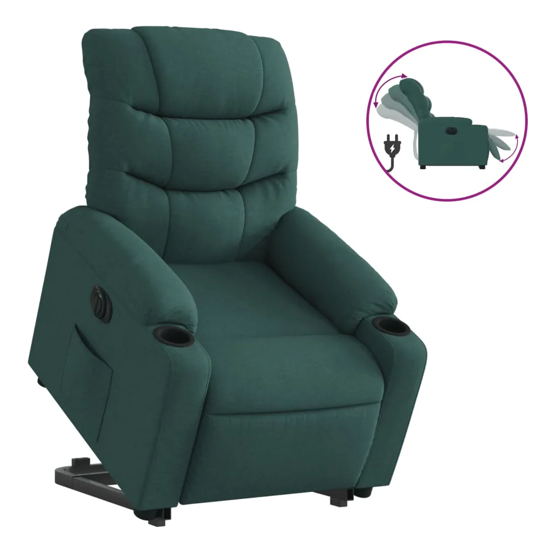 Asseyez-vous et détendez-vous dans ce fauteuil inclinable électrique très confortable ! Fonction de levage électrique : ce fauteuil inclinable pour personnes âgées est équipé d'un moteur électrique pour la fonction de levage. Grâce à la fonction qui pousse toute la chaise vers le haut, vous pouvez facilement vous tenir debout sans stresser votre dos et vos genoux en appuyant simplement sur le bouton.Fonction d'inclinaison électrique : ce fauteuil inclinable est également équipé d'un moteur électrique qui permet de régler automatiquement le repose-pied et le dossier dans n'importe quelle position, selon votre confort, en appuyant simplement sur le bouton situé sur le côté du fauteuil. Cette fonction permet une inclinaison maximale de 135 degrés. En outre, le dossier peut revenir automatiquement à sa position d'origine par une simple pression sur le bouton.Expérience d'assise confortable : le siège, le dossier et les larges accoudoirs bien rembourrés recouverts de tissu procurent une sensation confortable et chaleureuse, vous permettant de vous sentir enveloppé lorsque vous êtes assis. Le tissu présente un aspect simple et épuré et est respirant et durable.Poche latérale pratique : ce fauteuil est doté d'une poche latérale pour vous permettre de garder vos objets essentiels à portée de main.Cadre solide et stable : le cadre en bois et en métal offre une structure solide et une grande stabilité. Ce fauteuil inclinable est confortable et durable.