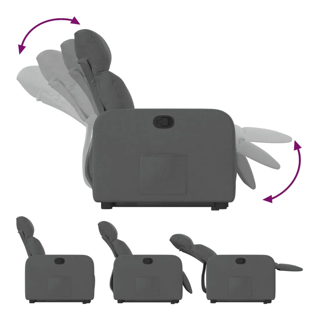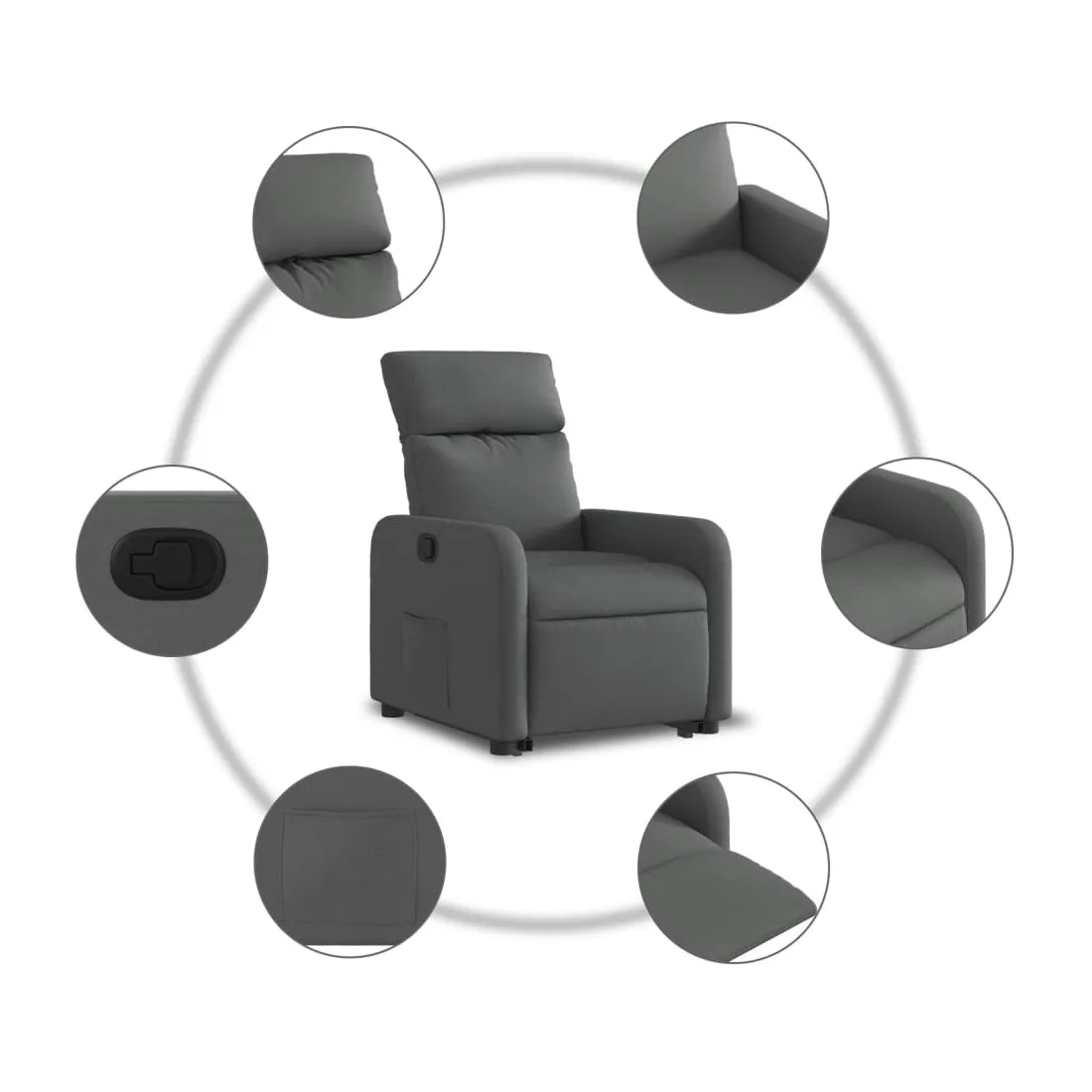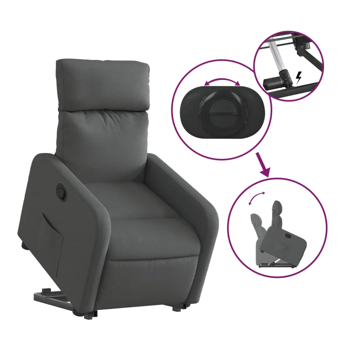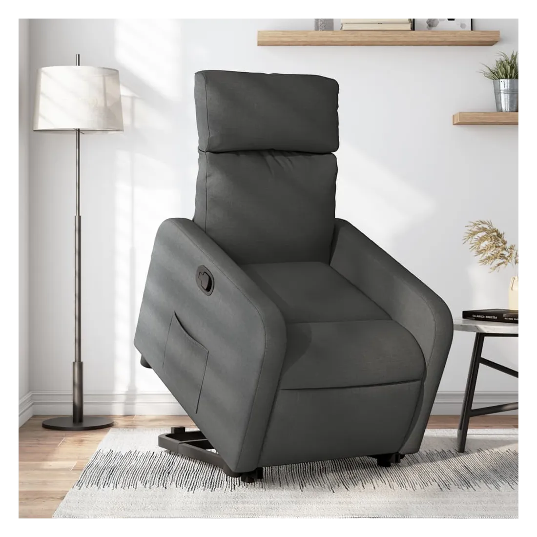Asseyez-vous et détendez-vous dans ce fauteuil inclinable très confortable ! Fonction de levage électrique : ce fauteuil inclinable pour personnes âgées est équipé d'un moteur électrique pour la fonction de levage. Grâce à la fonction qui pousse toute la chaise vers le haut, vous pouvez facilement vous tenir debout sans stresser votre dos et vos genoux en appuyant simplement sur le bouton.Fonction d'inclinaison manuelle : ce fauteuil inclinable est doté d'une poignée du côté droit. Vous pouvez régler manuellement le repose-pieds et le dossier dans n'importe quelle position selon votre confort en tirant simplement sur la poignée. Cette fonction permet une inclinaison maximale de 135 degrés. De plus, le dossier peut revenir rapidement à sa position d'origine en tirant simplement sur la poignée.Expérience d'assise confortable : le siège, le dossier et les larges accoudoirs bien rembourrés recouverts de tissu procurent une sensation confortable et chaleureuse, vous permettant de vous sentir enveloppé lorsque vous êtes assis. Le tissu présente un aspect simple et épuré et est respirant et durable.Poche latérale pratique : ce fauteuil est doté d'une poche latérale pour vous permettre de garder vos objets essentiels à portée de main.Cadre solide et stable : le cadre en bois et en métal offre une structure solide et une grande stabilité. Ce fauteuil inclinable est confortable et durable.