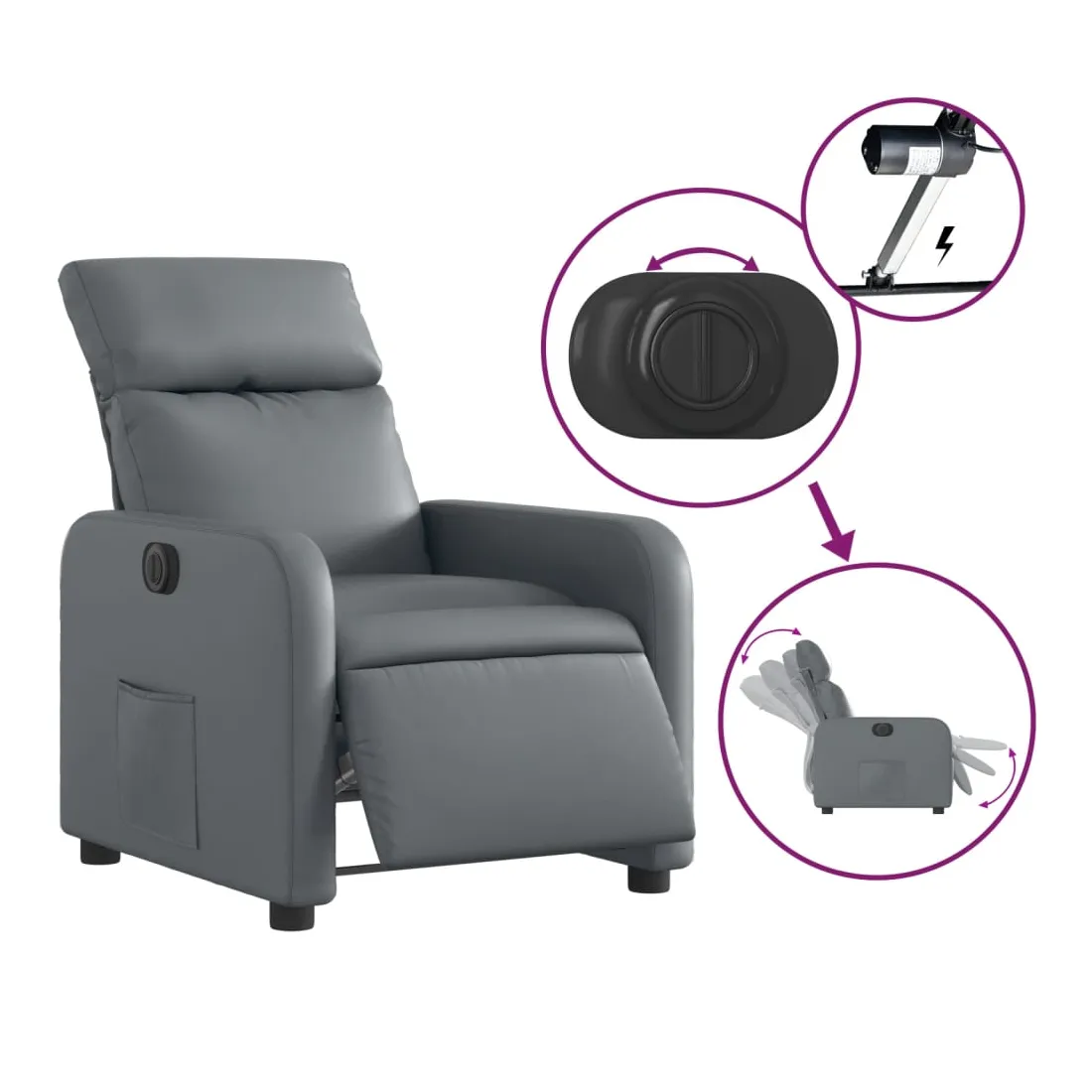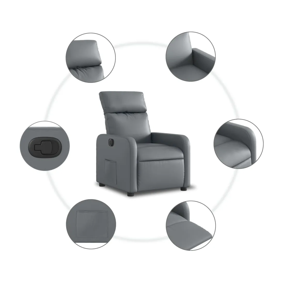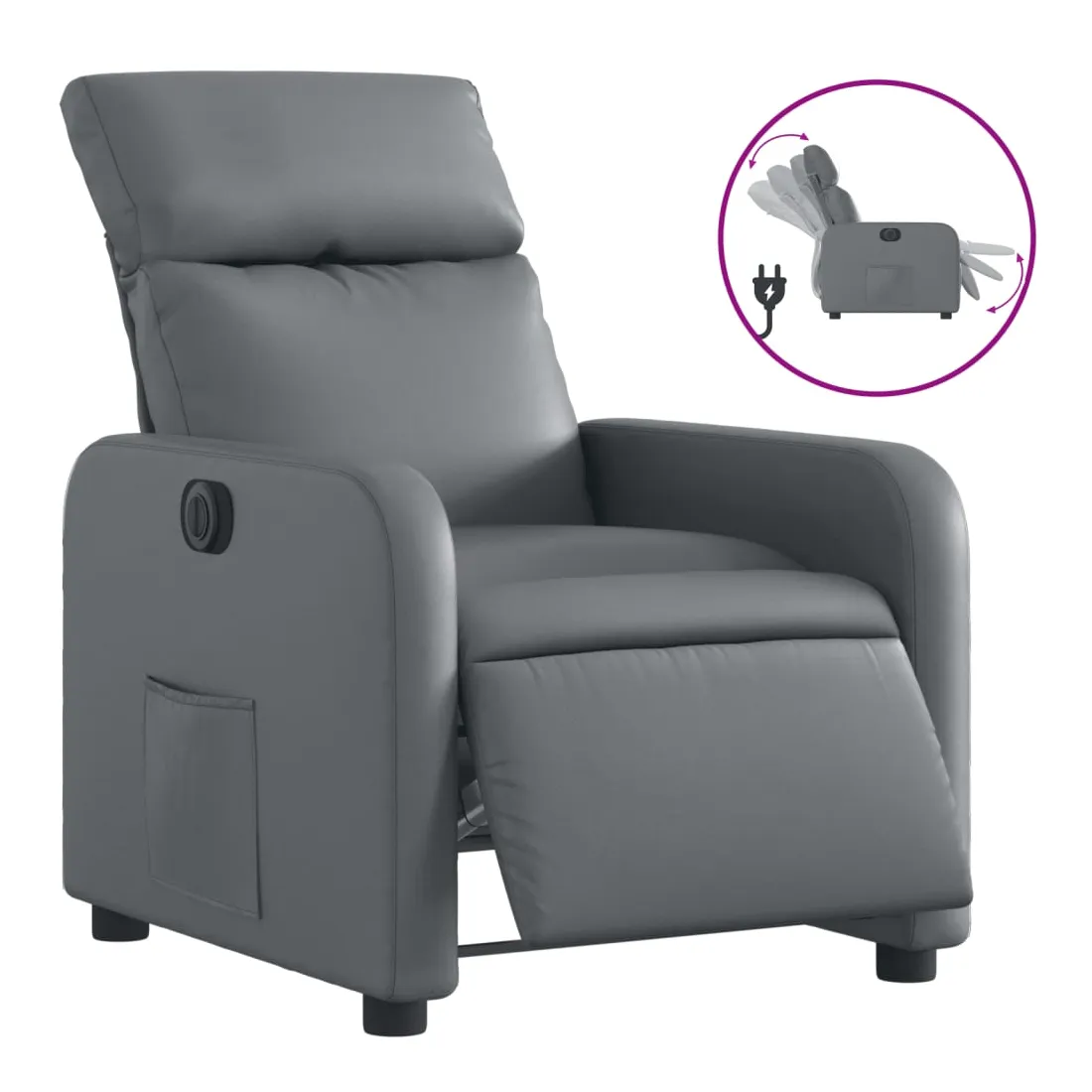 Asseyez-vous et détendez-vous dans ce fauteuil inclinable électrique très confortable ! Fonction d'inclinaison électrique : ce fauteuil inclinable est équipé d'un moteur électrique qui permet de régler automatiquement le repose-pied et le dossier dans n'importe quelle position, selon votre confort, en appuyant simplement sur le bouton situé sur le côté du fauteuil. Cette fonction permet une inclinaison maximale de 135 degrés. En outre, le dossier peut revenir automatiquement à sa position d'origine par une simple pression sur le bouton.Expérience de siège confortable : le siège, le dossier et les larges accoudoirs rembourrés épais recouverts de similicuir procurent une sensation confortable, vous faisant vous sentir enlacé lorsque vous êtes assis. Le similicuir est un matériau très résistant. Il est résistant aux taches, ce qui le rend facile à nettoyer avec un chiffon humide. La surface lisse donne également un aspect luxueux et la beauté du cuir véritable.Poche latérale pratique : ce fauteuil est doté d'une poche latérale pour vous permettre de garder vos objets essentiels à portée de main.Cadre solide et stable : le cadre en bois et en métal offre une structure solide et une grande stabilité. Ce fauteuil inclinable est confortable et durable.
