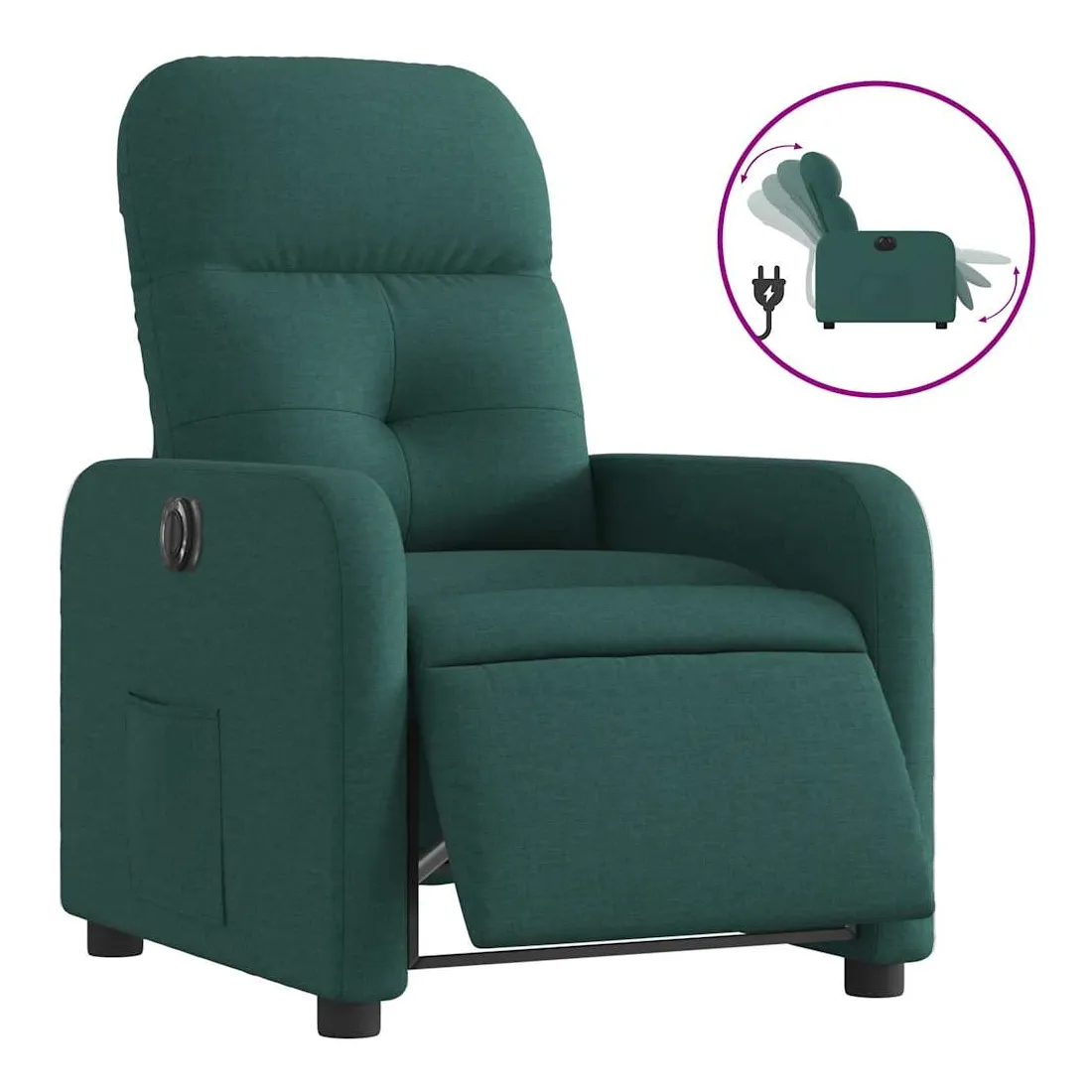 Asseyez-vous et détendez-vous dans ce fauteuil inclinable électrique très confortable ! Fonction d'inclinaison électrique : ce fauteuil inclinable est équipé d'un moteur électrique qui permet de régler automatiquement le repose-pied et le dossier dans n'importe quelle position, selon votre confort, en appuyant simplement sur le bouton situé sur le côté du fauteuil. Cette fonction permet une inclinaison maximale de 135 degrés. En outre, le dossier peut revenir automatiquement à sa position d'origine par une simple pression sur le bouton.Expérience d'assise confortable : le siège, le dossier et les larges accoudoirs bien rembourrés recouverts de tissu procurent une sensation confortable et chaleureuse, vous permettant de vous sentir enveloppé lorsque vous êtes assis. Le tissu présente un aspect simple et épuré et est respirant et durable.Poche latérale pratique : ce fauteuil est doté d'une poche latérale pour vous permettre de garder vos objets essentiels à portée de main.Cadre solide et stable : le cadre en bois et en métal offre une structure solide et une grande stabilité. Ce fauteuil inclinable est confortable et durable.