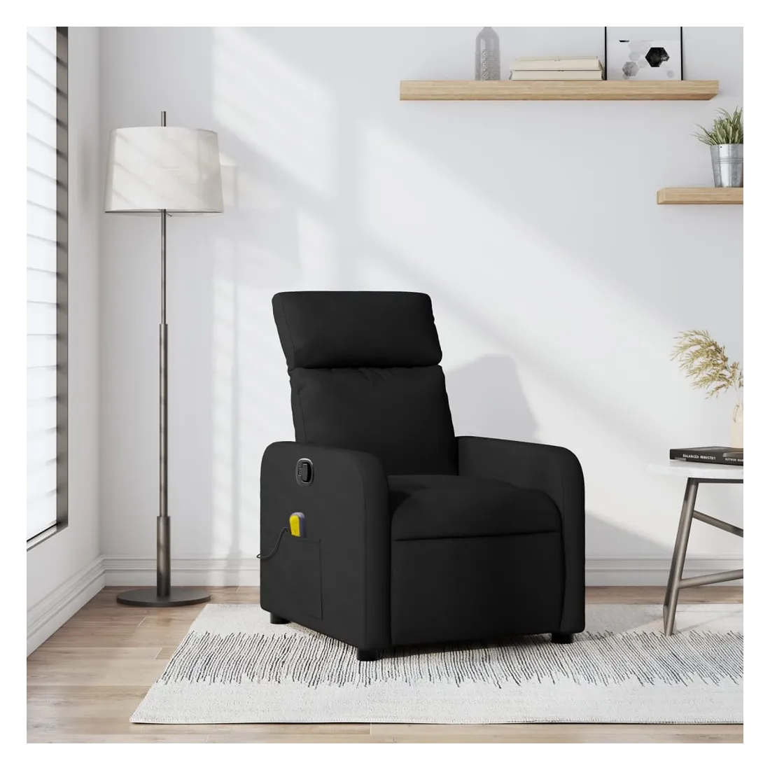 Asseyez-vous et laissez-vous aller dans ce fauteuil inclinable massant très confortable ! Fonction d'inclinaison manuelle : Ce fauteuil inclinable est doté d'une poignée sur le côté droit. Vous pouvez régler manuellement le repose-pieds et le dossier dans n'importe quelle position selon votre confort en tirant simplement sur la poignée. Cette fonction permet une inclinaison maximale de 135 degrés. De plus, le dossier peut revenir rapidement à sa position initiale en tirant facilement sur la poignée.Fonction de vibration : Les 6 points de massage vous permettent de bénéficier d'un massage mieux ciblé. De plus, la télécommande incluse vous permet de choisir différents programmes de massage. La fonction de massage est alimentée par le connecteur USB, mais la source d'alimentation USB 5 V certifiée n'est pas incluse.Expérience d'assise confortable : Le siège, le dossier et les larges accoudoirs recouverts de tissu, au rembourrage épais, procurent une sensation de confort et de chaleur, vous donnant l'impression d'être bien assis. Le tissu, au look simple et épuré, est respirant et résistant.Poche latérale pratique : Ce fauteuil est doté d'une poche latérale pour votre télécommande ou pour garder vos objets essentiels à portée de main.Cadre solide et stable : Le cadre en bois et en métal offre une structure solide et stable. Ce fauteuil inclinable est confortable et résistant.