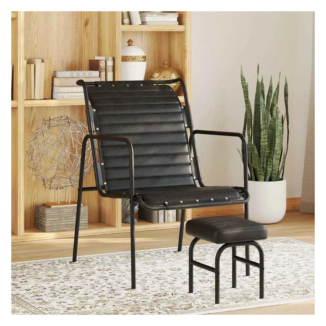 Ce fauteuil de relaxation de style vintage avec repose-pied constitue un excellent supplément à votre décoration intérieure. Fabriqué en cuir véritable et en fer enduit de poudre, ce fauteuil est durable et facile à entretenir. Le cuir véritable doux et souple sur le siège et le dossier offre un soutien suffisant à votre corps avec le plus grand confort. De plus, le repose-pied vous permet de reposer vos pieds pour un soutien supplémentaire.