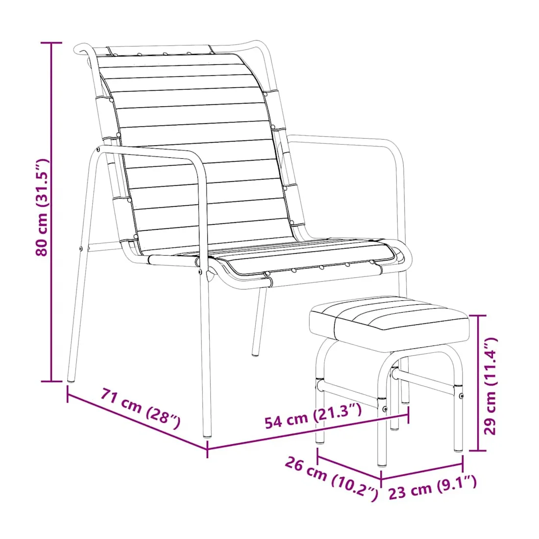 - Dimensions de la chaise : 54 x 71 x 80 cm (l x P x H)