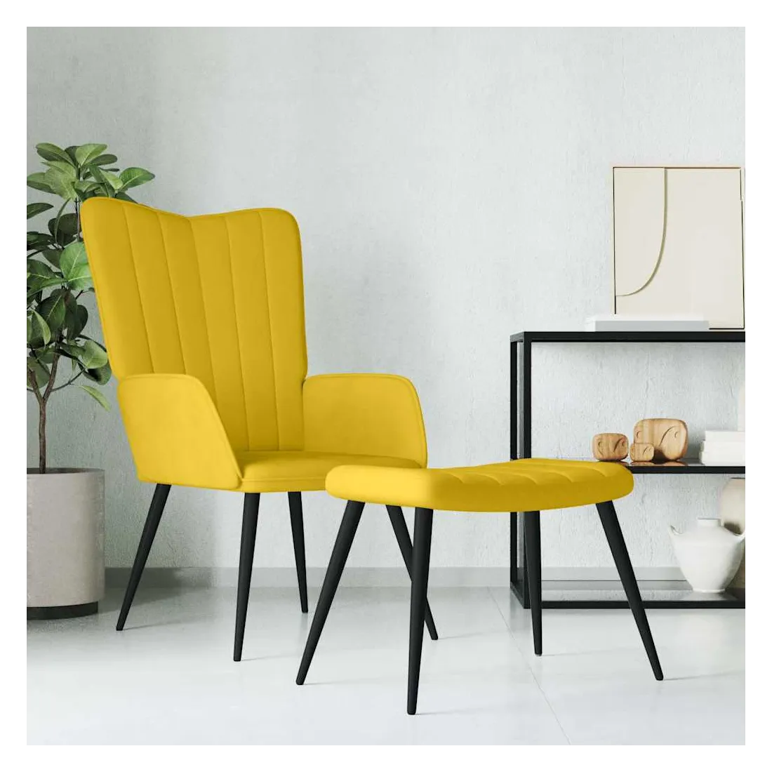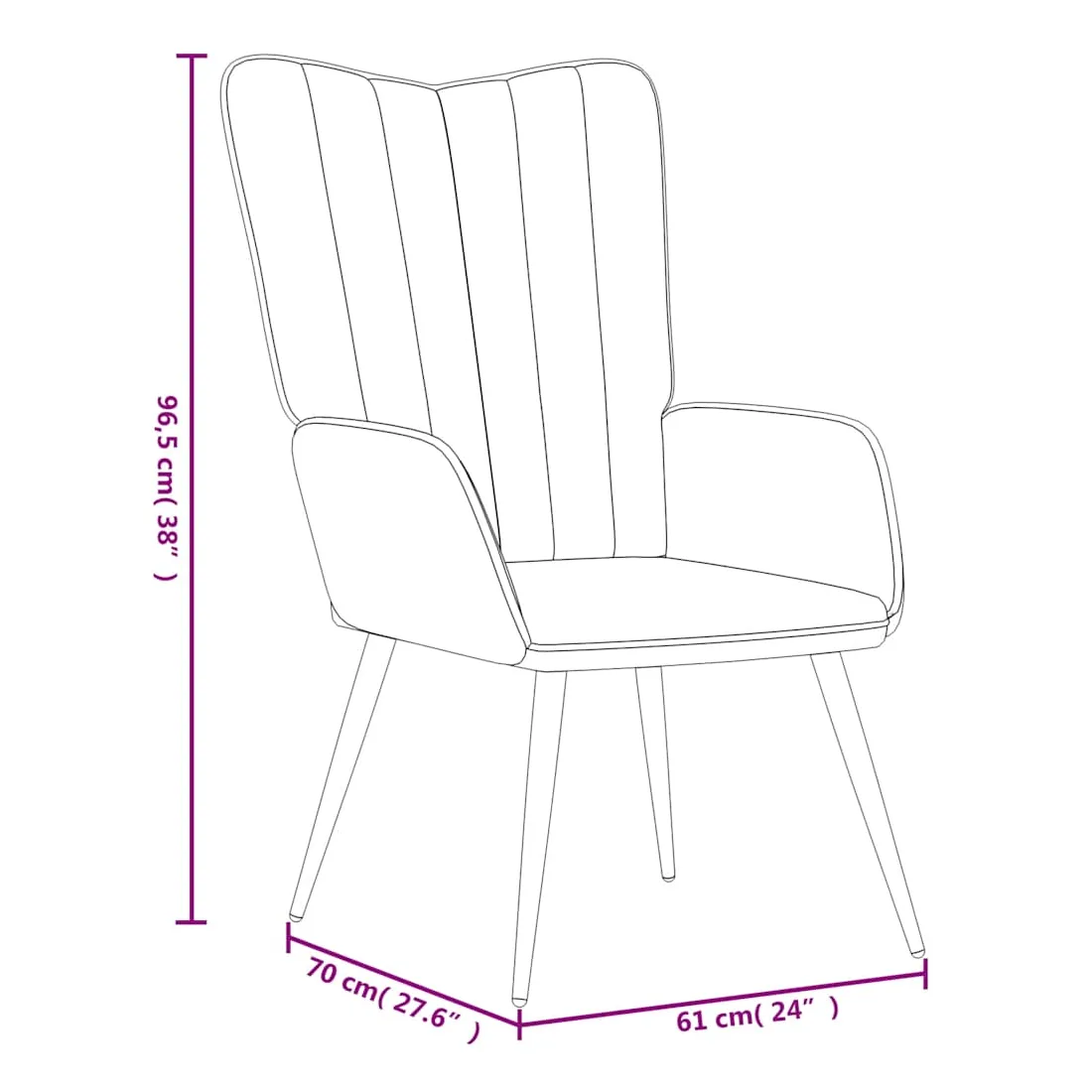 Cette chaise de relaxation avec repose-pied est un excellent supplément à votre décor existant. Ce fauteuil, avec quelques lignes sur son dossier, est esthétique. Grâce à sa mousse capitonnée recouverte de velours doux au toucher, vous pourrez profiter d'un confort optimal pendant votre temps d'assise. Soutenu par un cadre en acier, le fauteuil de relaxation avec repose-pied est stable et durable.