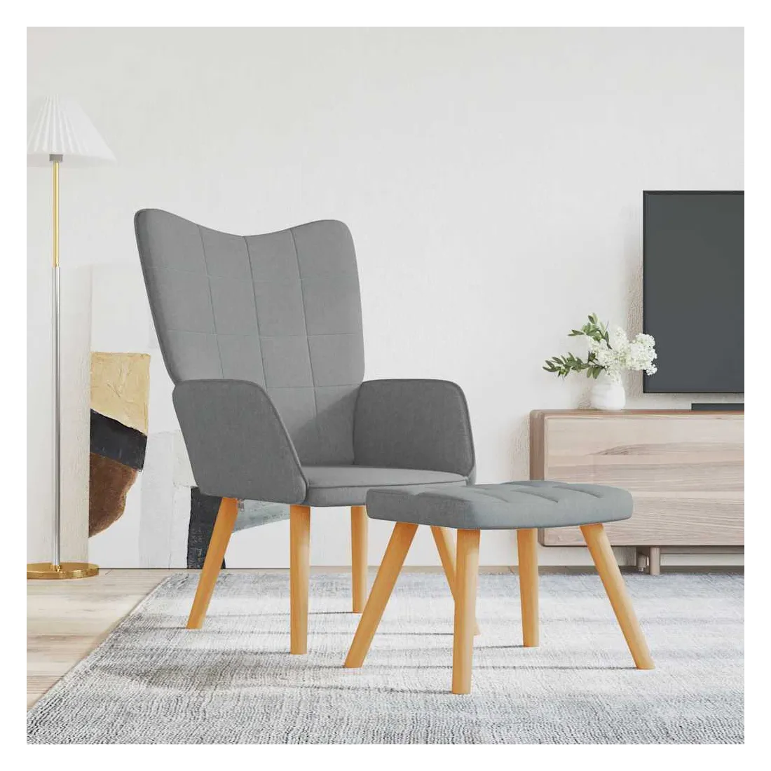 Cette chaise de relaxation avec tabouret au design chic et élégant apportera une touche de modernité à votre déco. Doté de quelques blocs, ce fauteuil est esthétique. Grâce à sa mousse rembourrée recouverte d'un tissu doux au toucher, vous pourrez profiter d'un confort optimal pendant votre temps d'assise. De plus, soutenue par un cadre en acier et des pieds en bois, la chaise à manger avec tabouret est stable et durable.
