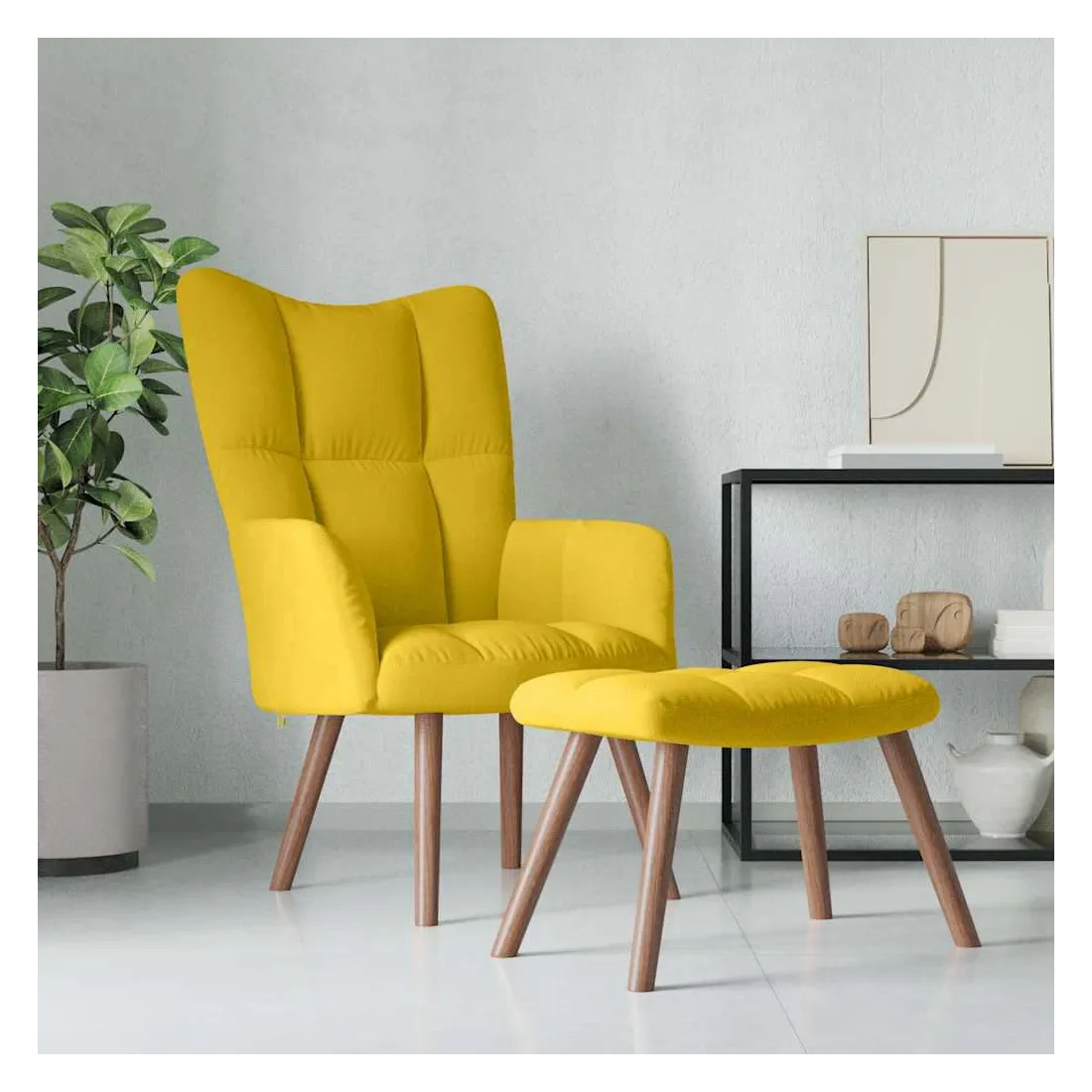 Cette chaise de relaxation avec repose-pied est un excellent supplément à votre décor existant. Ce fauteuil, avec quelques blocs sur son dossier, est esthétique. Grâce à sa mousse épaisse capitonnée recouverte de velours doux au toucher, vous pourrez profiter d'un confort optimal pendant votre temps d'assise. Soutenu par un cadre en acier et des pieds en bois, le fauteuil de relaxation avec repose-pied est stable et durable.