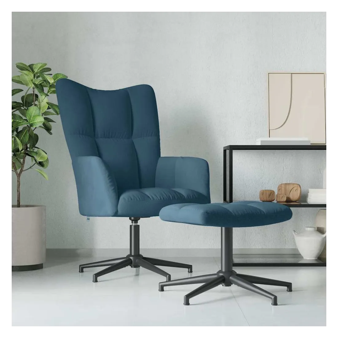 Cette chaise de relaxation avec repose-pied au design chic et élégant apportera une touche de modernité à votre déco. Avec quelques blocs, ce fauteuil est esthétique. Grâce à sa mousse bien rembourrée recouverte de velours doux au toucher, vous pourrez profiter d'un confort optimal pendant votre temps d'assise. Ce siège de relaxation peut pivoter à 360 degrés pour une grande flexibilité. De plus, soutenue par un cadre en acier et des pieds croisés, la chaise de relaxation avec un tabouret est stable et durable.