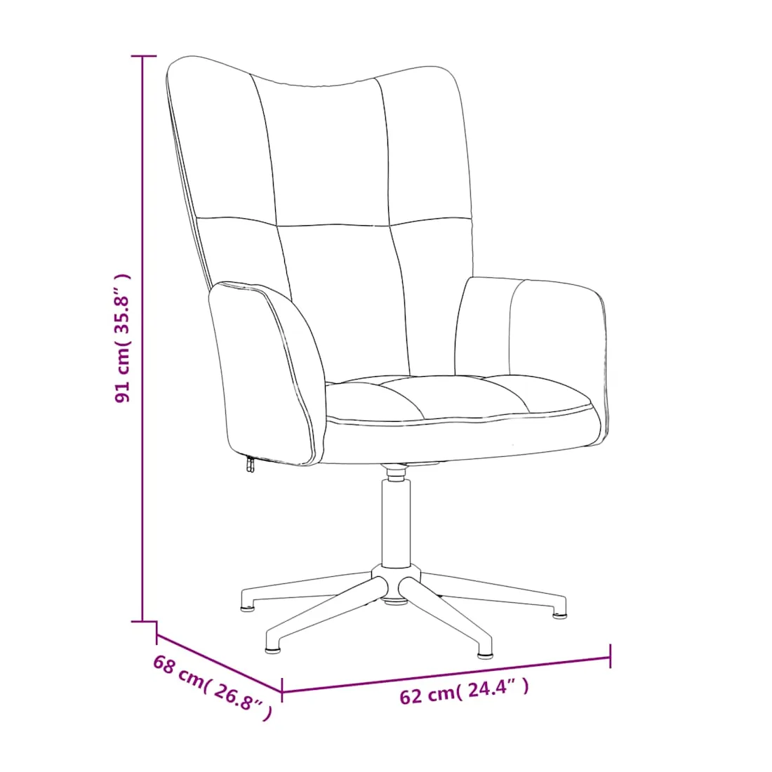 - Dimensions de la chaise : 62 x 68 x 98 cm (l x P x H)