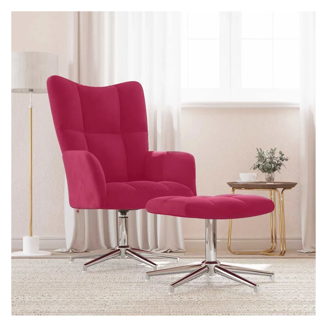 Cette chaise de relaxation avec repose-pied au design chic et élégant apportera une touche de modernité à votre déco. Avec quelques blocs, ce fauteuil est esthétique. Grâce à sa mousse bien rembourrée recouverte de velours doux au toucher, vous pourrez profiter d'un confort optimal pendant votre temps d'assise. Ce siège de relaxation peut pivoter à 360 degrés pour une grande flexibilité. De plus, soutenue par un cadre en acier et des pieds croisés, la chaise de relaxation avec un tabouret est stable et durable.