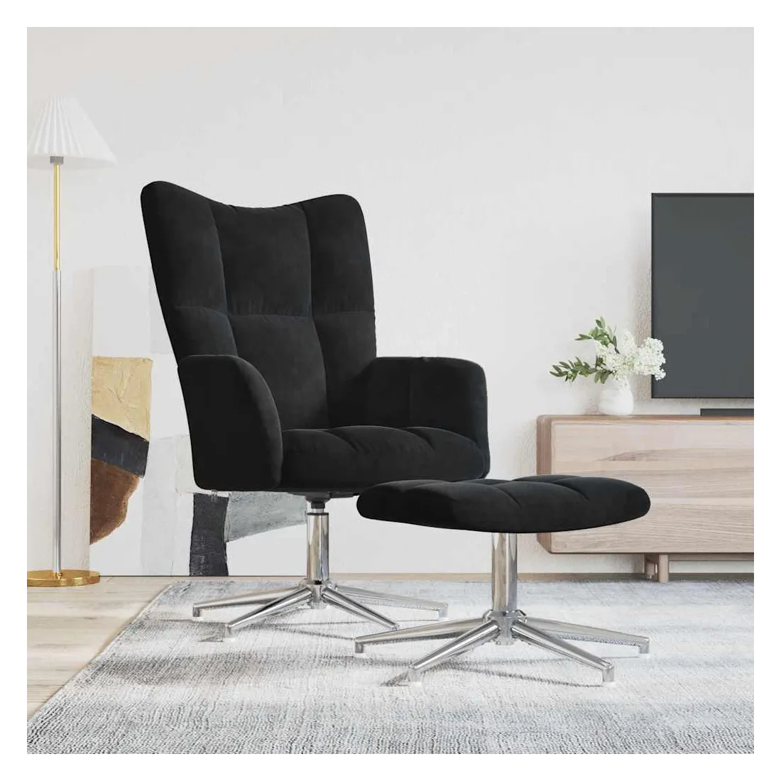 Cette chaise de relaxation avec repose-pied au design chic et élégant apportera une touche de modernité à votre déco. Avec quelques blocs, ce fauteuil est esthétique. Grâce à sa mousse bien rembourrée recouverte de velours doux au toucher, vous pourrez profiter d'un confort optimal pendant votre temps d'assise. Ce siège de relaxation peut pivoter à 360 degrés pour une grande flexibilité. De plus, soutenue par un cadre en acier et des pieds croisés, la chaise de relaxation avec un tabouret est stable et durable.
