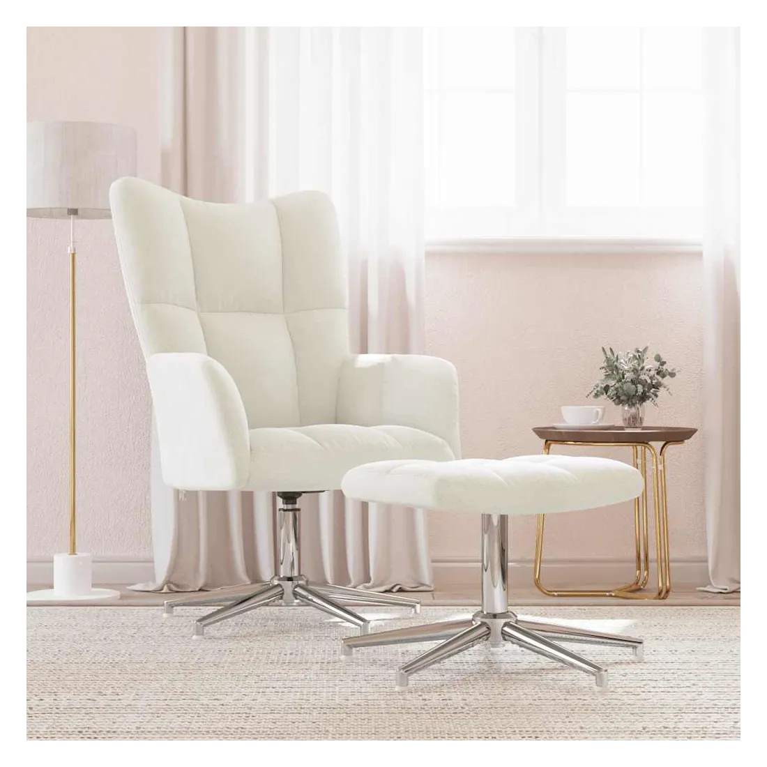 Cette chaise de relaxation avec repose-pied au design chic et élégant apportera une touche de modernité à votre déco. Avec quelques blocs, ce fauteuil est esthétique. Grâce à sa mousse bien rembourrée recouverte de velours doux au toucher, vous pourrez profiter d'un confort optimal pendant votre temps d'assise. Ce siège de relaxation peut pivoter à 360 degrés pour une grande flexibilité. De plus, soutenue par un cadre en acier et des pieds croisés, la chaise de relaxation avec un tabouret est stable et durable.
