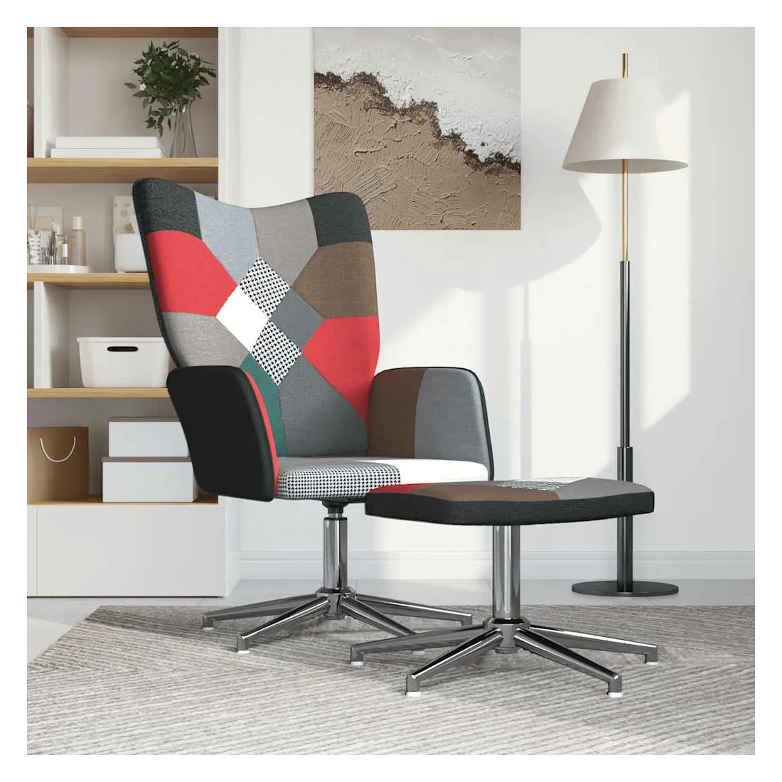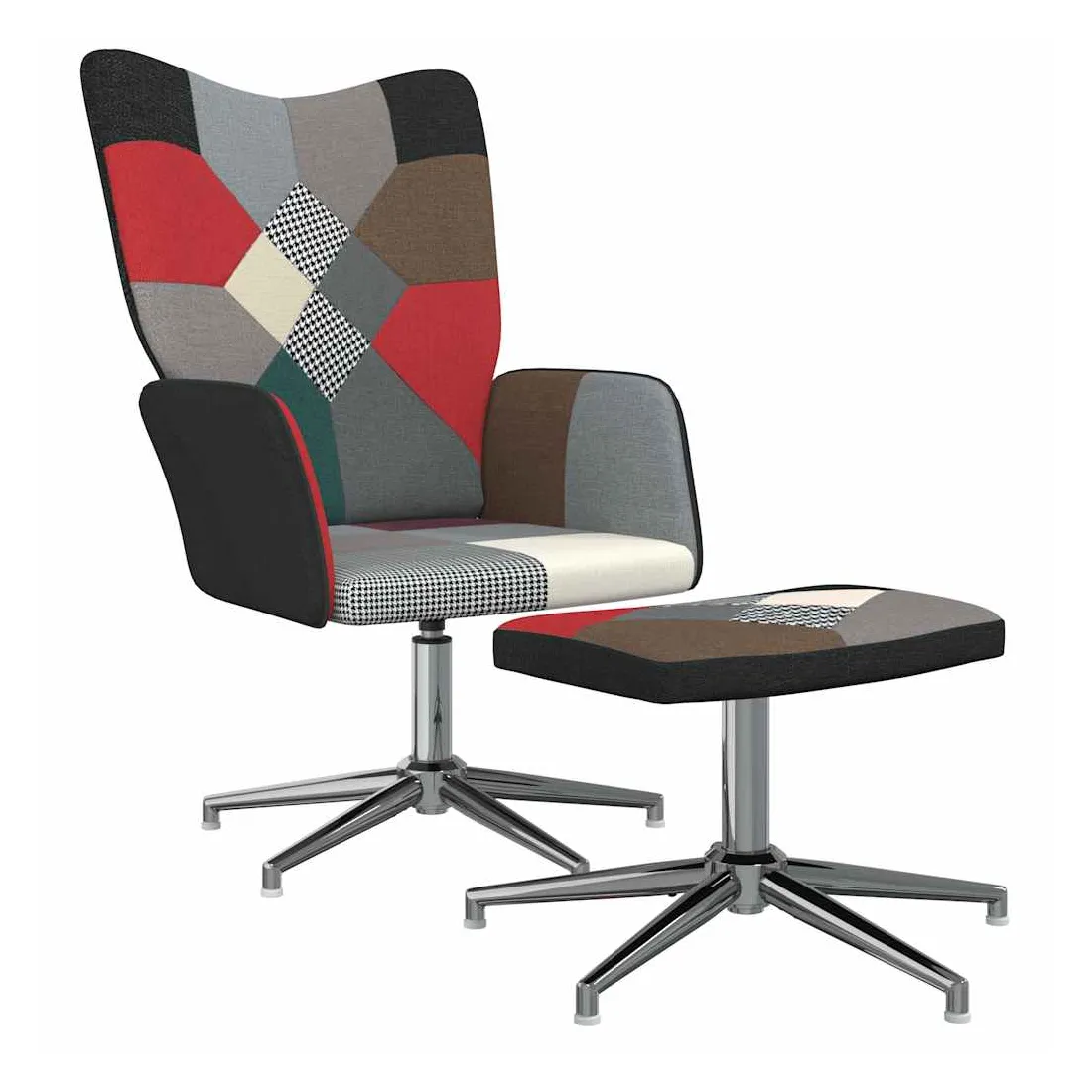 Cette chaise de relaxation avec repose-pied est un excellent supplément à votre décor existant. Ce fauteuil, au design patchwork foncé, est esthétiquement plaisant. Grâce à sa mousse rembourrée recouverte de tissu doux au toucher, vous pourrez profiter d'un confort optimal pendant votre temps d'assise. Ce siège de relaxation peut pivoter à 360 degrés pour une grande flexibilité. Soutenue par un cadre en acier, la chaise de relaxation avec un repose-pied est stable et durable.
