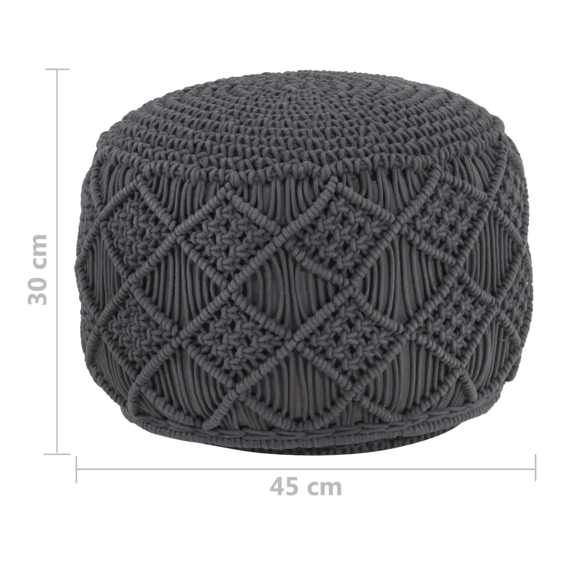 Asseyez-vous ou posez vos pieds sur le pouf et détendez-vous ! Ce pouf contemporain et chic en macramé apportera une touche décorative et conviviale à votre décoration intérieure. Le pouf est fabriqué à la main à partir de 80 % coton et de 20 % polyester, et rempli de balles en mousse EPS qui le rendent très confortable. Placez le pouf devant un canapé ou un fauteuil, il contribuera certainement à créer une ambiance chaleureuse dans toute pièce !