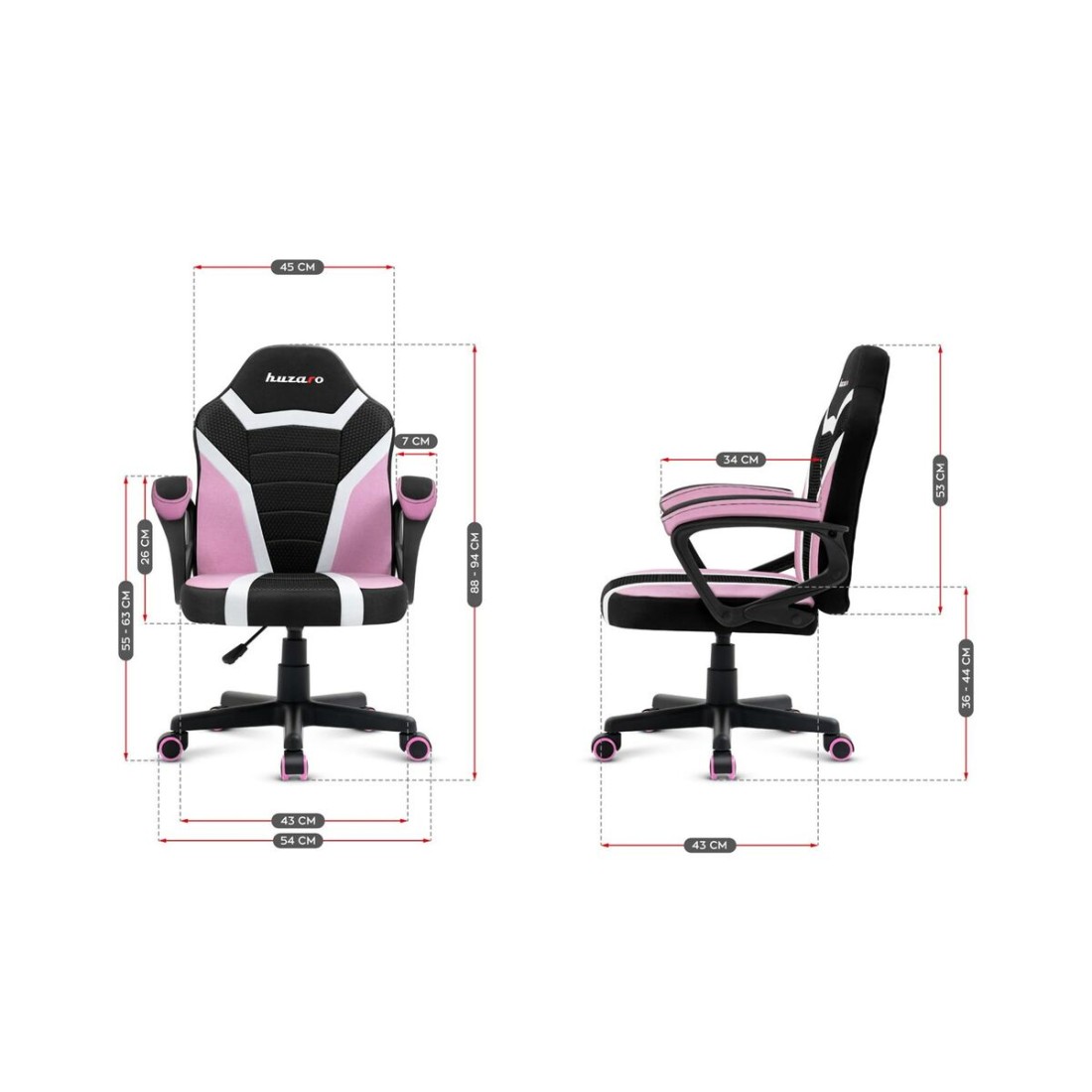 Gaming Chair Huzaro HZ-Ranger 1.0 pink mesh Black/Pink Kids