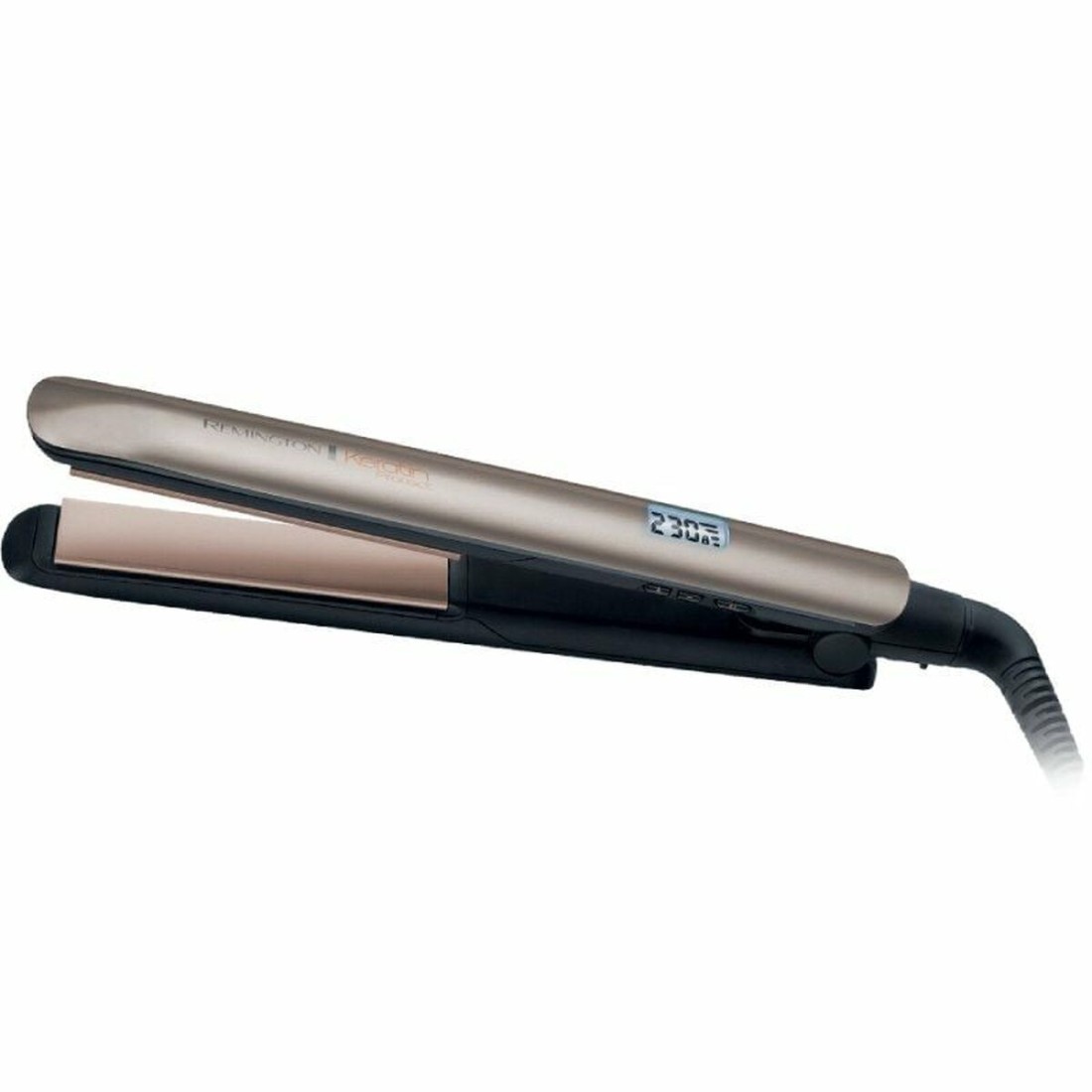 Remington S8540. Type: Straightening iron, Technology: Warm, Temperature (max): 230 °C. Product colour: Black, Bronze. Cord length: 1.8 m, Display type: LCD, Auto power off after: 60 min. Quantity per pack: 1 pc(s)