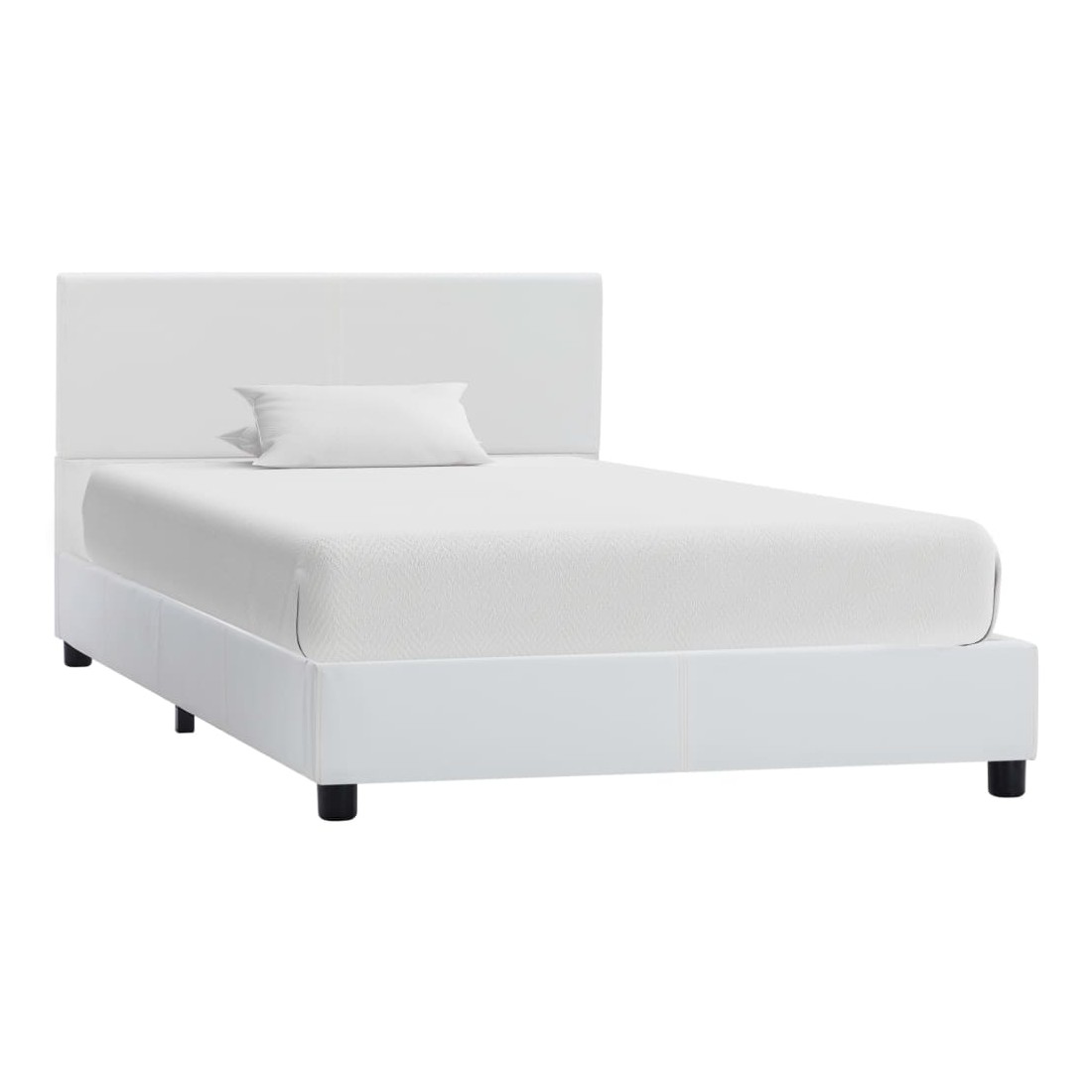 Ajoutez instantanément un goût moderne impressionnant à votre chambre à coucher avec notre cadre de lit élégant ! Ce cadre de lit en faux cuir avec une tête de lit confortable deviendra le point central de votre chambre à coucher. Fabriqué en MDF, le cadre de lit est extrêmement robuste et durable. Les pieds en acier enduit de poudre ajoutent une durabilité accrue au lit. De plus, recouvert de cuir artificiel durable, le lit dégage un look accueillant. Grâce à la tête de lit souple, vous pouvez regarder la télévision ou lire un livre confortablement. Ce cadre de lit convient à un matelas de 90 x 200 cm. Veuillez noter que la livraison inclut un cadre de lit seulement ; un matelas n'est pas inclus. Le lit rembourré est facile à assembler. Vous pouvez chercher le matelas correspondant dans notre boutique.