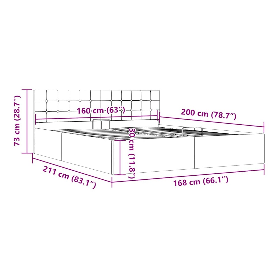 Cadre de lit à rangement hydraulique sans matelas 160x200 cm