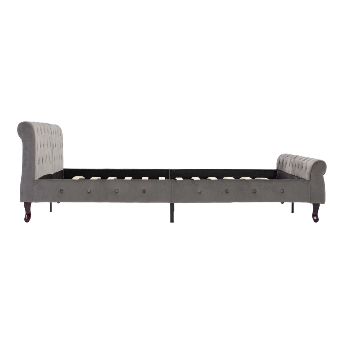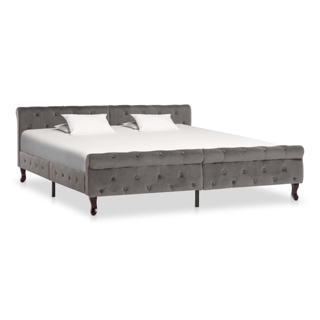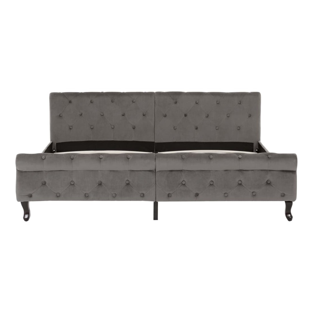 Ce cadre de lit classique deviendra l'attraction principale de votre chambre à coucher. Ce lit ajoute une touche de charme élégant à la décoration de votre chambre à coucher. Fabriqué en contreplaqué et en acier, ce lit rembourré est extrêmement robuste et durable. Les pieds en bois de pin massif ajoutent une durabilité accrue au lit. De plus, recouvert de velours doux, le sommier dégage un aspect accueillant et une touche lisse. Ce cadre de lit est également facile à assembler. Veuillez noter que la livraison inclut un cadre de lit seulement ; un matelas n'est pas inclus. Le lit est facile à assembler. Vous pouvez chercher le matelas correspondant dans notre boutique.