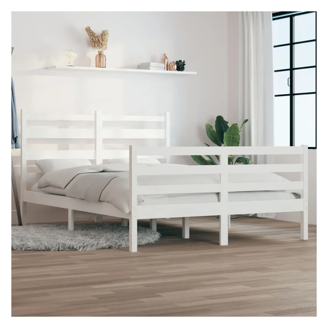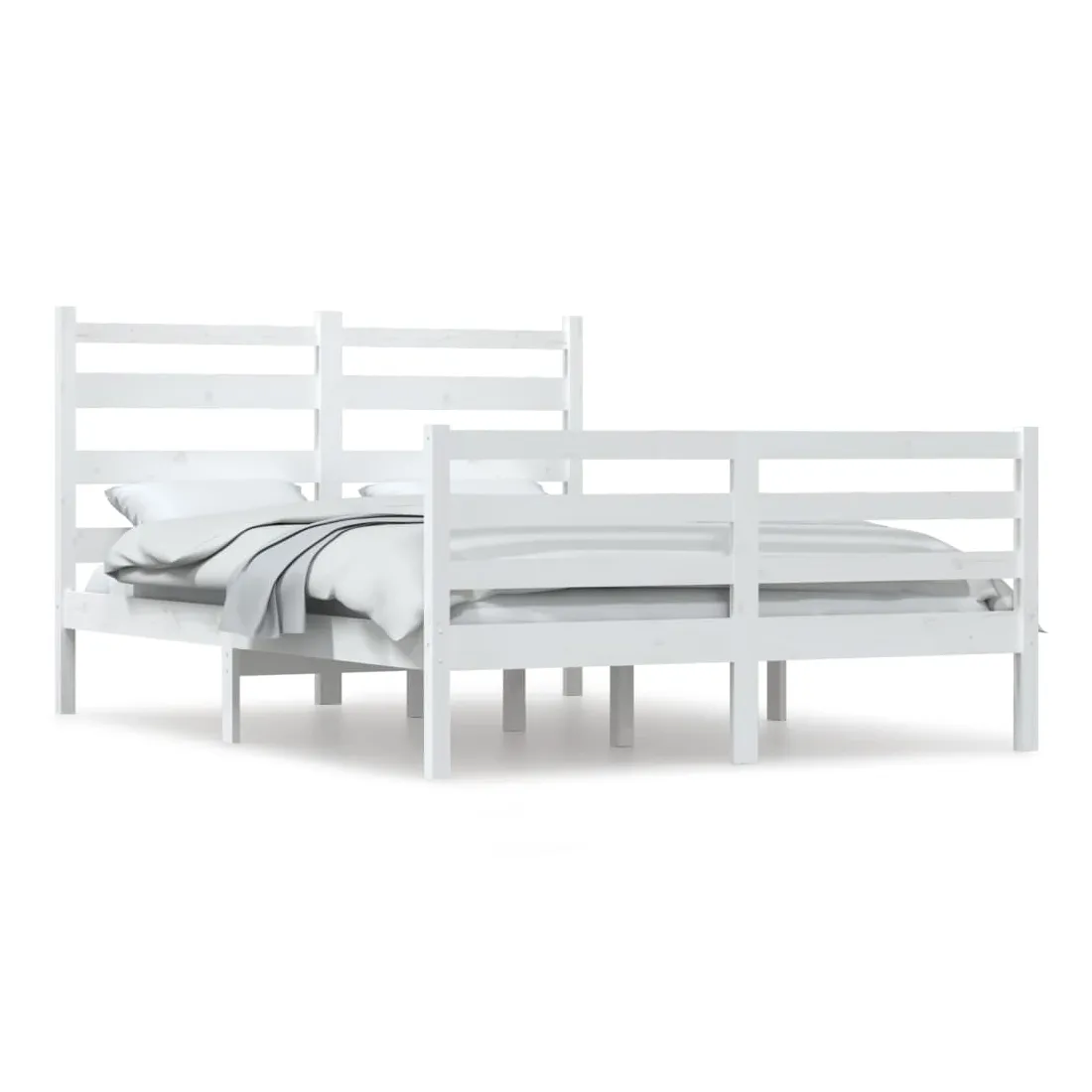 Cadre de lit sans matelas bois de pin massif 120x200 cm blanc