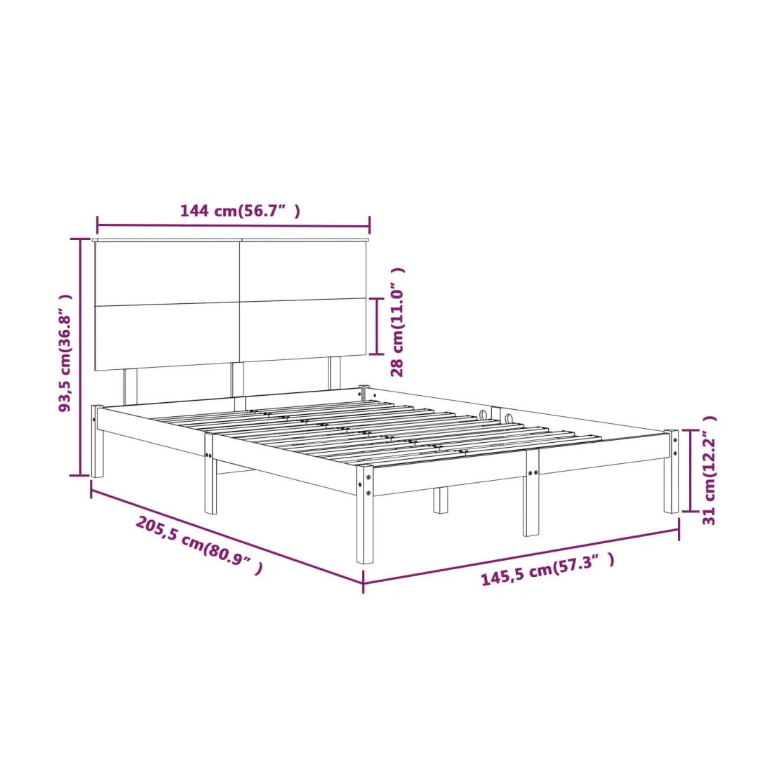 Cadre de lit sans matelas 140x200 cm bois massif de pin