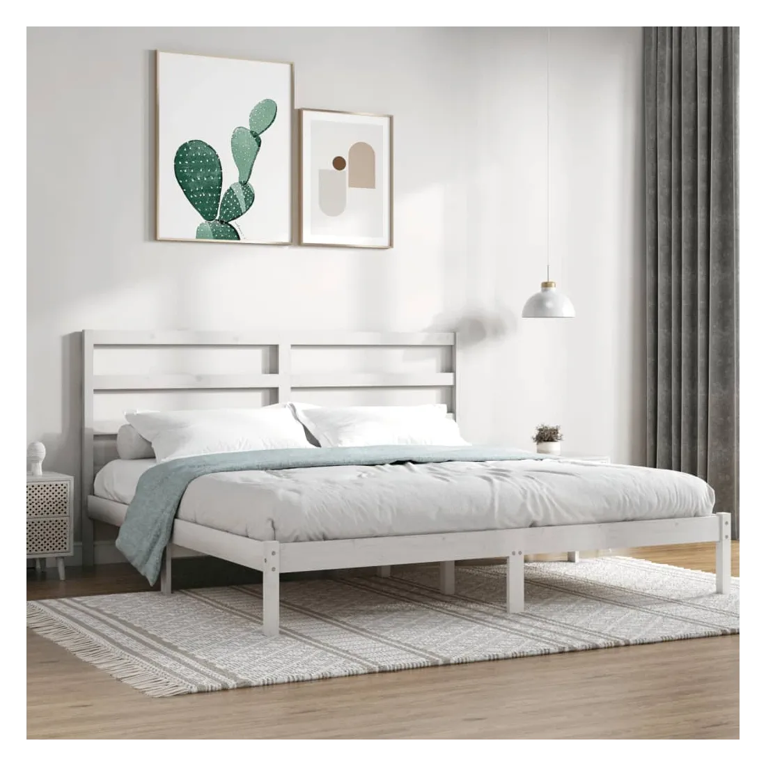 Prenez le chemin moderne vers votre chambre à coucher cool avec ce cadre de lit en bois ! Il constitue un supplément pratique et décoratif à votre intérieur. Matériau de première qualité : le bois de pin massif est un matériau naturel magnifique. Le bois de pin a un grain droit et les nœuds donnent au matériau son aspect caractéristique et rustique.Lattes robustes : les lattes de contreplaqué assurent une bonne répartition du poids, garantissant que le matelas reste en place à chaque torsion de votre corps pendant le sommeil.Tête de lit confortable : la tête de lit classique vous permet de vous reposer confortablement lorsque vous lisez ou regardez un film. Remarque :La livraison comprend uniquement un cadre de lit. Le matelas n'est pas inclus. Vous pouvez consulter notre boutique pour trouver les matelas assortis.Ce cadre de lit convient à un matelas mesurant 200 x 200 cm.