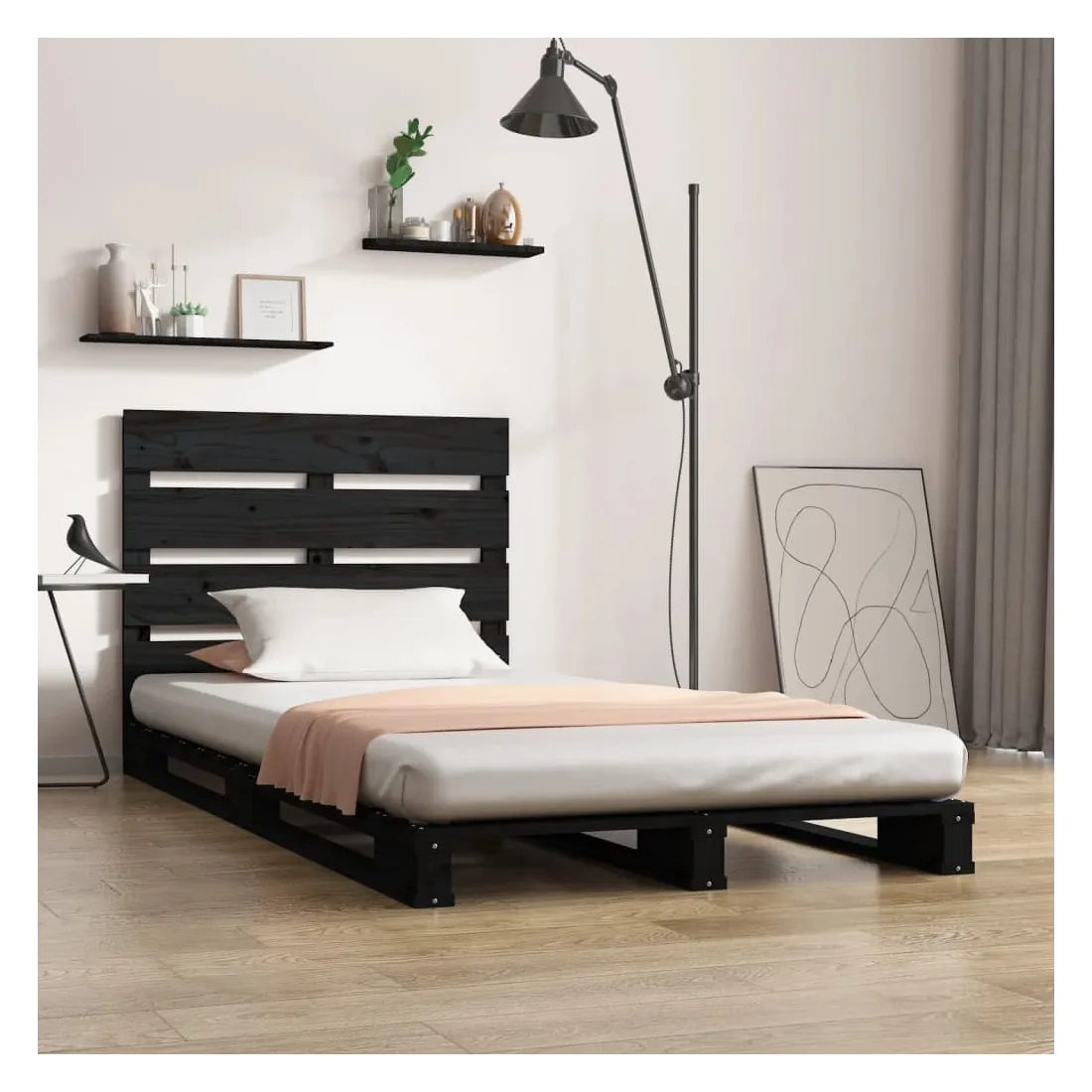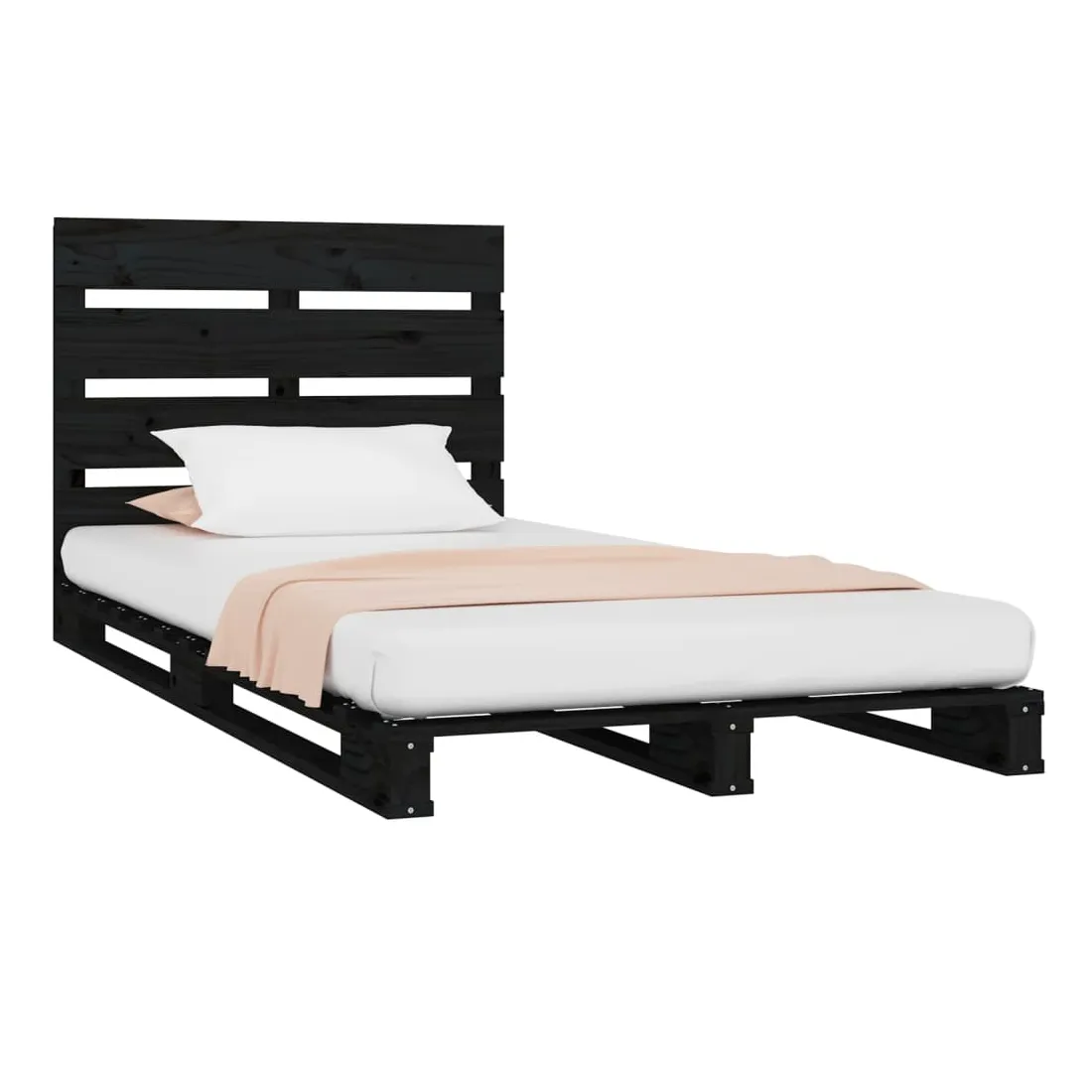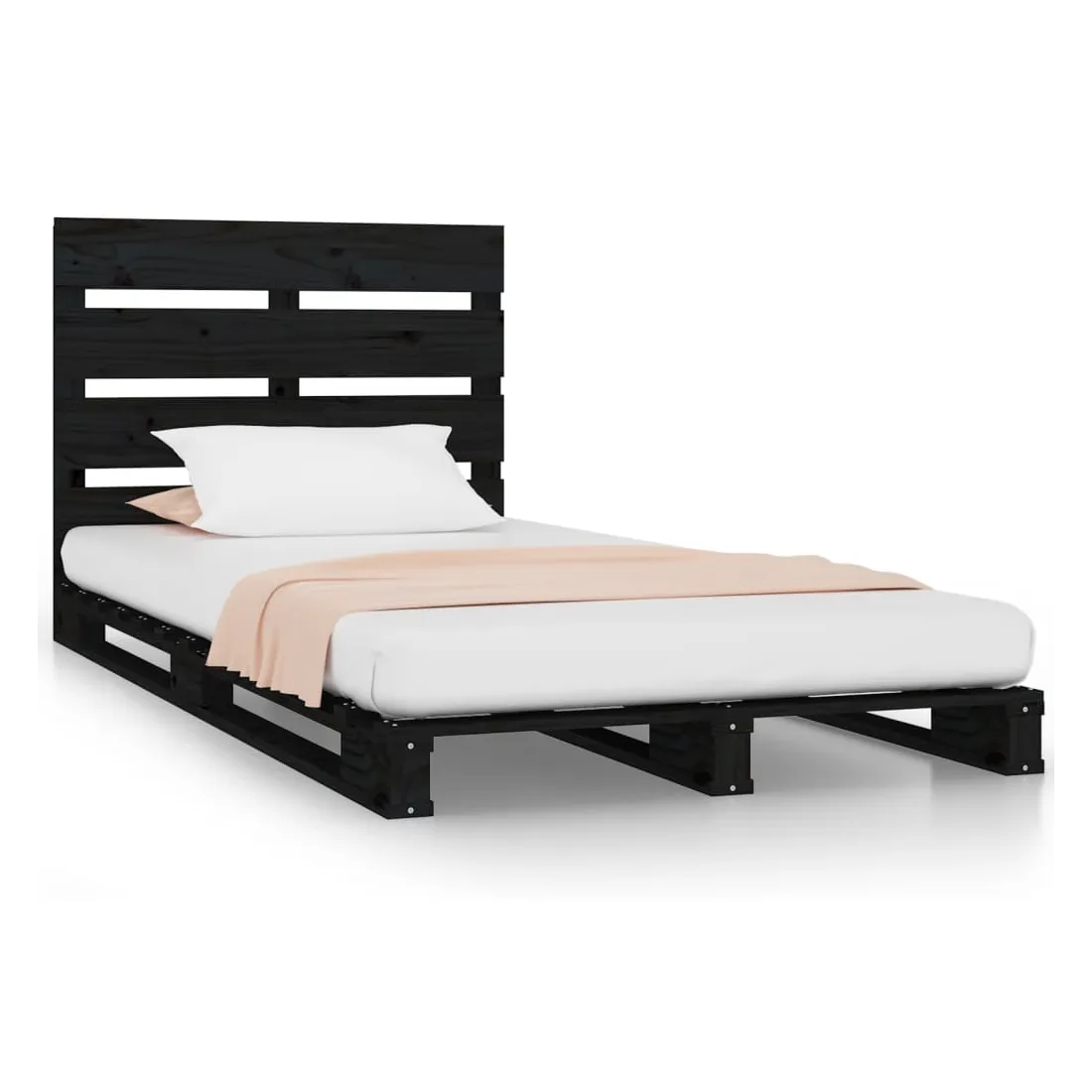 Cadre de lit sans matelas noir 75x190 cm bois de pin massif