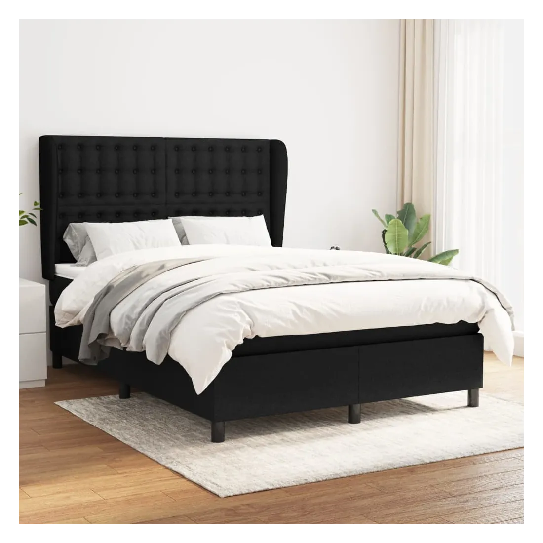 Sommier à lattes de lit avec matelas Noir 140x190 cm Tissu