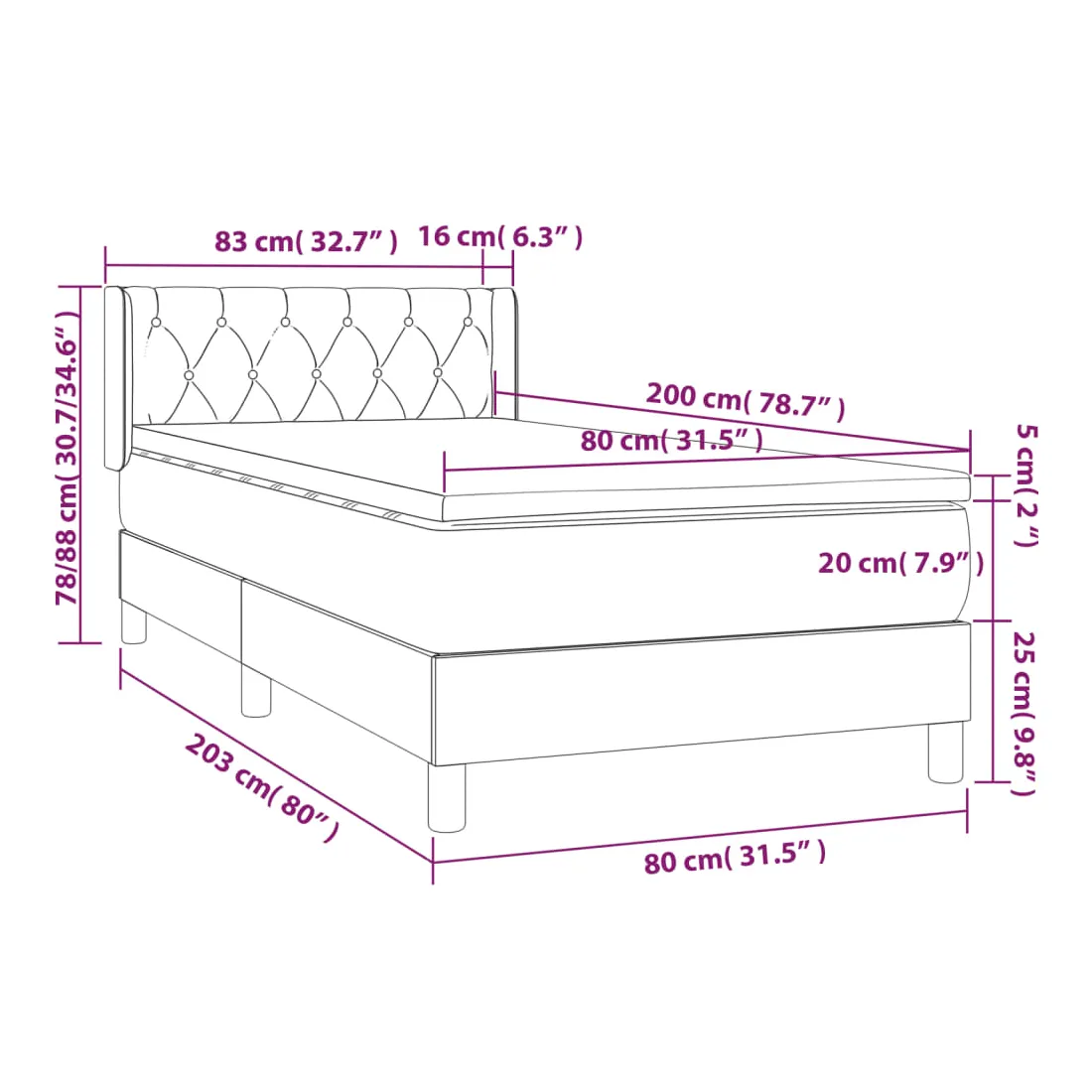 • Dimensions : 80 x 200 x 20 cm (l x L x H)