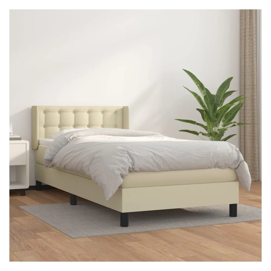 Sommier à lattes de lit avec matelas Crème 100x200cm Similicuir