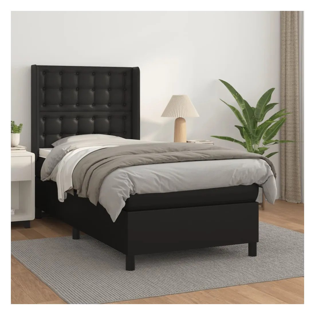Utilisez ce lit à sommier pour profiter d'une nuit de sommeil réparatrice ! Il vous offre une relaxation maximale et un sommeil agréable. Similicuir durable : le similicuir de qualité supérieure est un matériau très durable. Il est résistant aux taches, ce qui le rend facile à nettoyer avec un chiffon humide. La surface lisse donne également un aspect luxueux et la beauté du cuir véritable. Tête de lit pratique : la tête de lit est réglable en hauteur selon vos préférences. La tête de lit vous offre un excellent soutien du dos lorsque vous êtes assis dans votre lit pour lire ou regarder la télévision. Matelas à ressorts ensachés : le ressort ensaché individuel intégré est connu pour sa très haute qualité tout en assurant un haut niveau de durabilité et d'adaptabilité. Il peut absorber