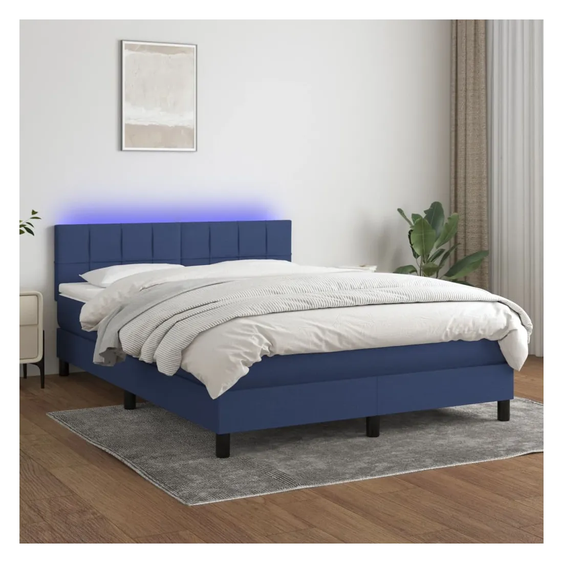 Utilisez ce sommier tapissier avec matelas et LED pour profiter d'un sommeil réparateur ! C'est le point central de votre chambre à coucher. Tissu durable : le tissu présente un aspect simple et épuré, et il est respirant et durable. Tête de lit pratique : la tête de lit est réglable en hauteur selon vos préférences. La tête de lit vous offre un excellent soutien du dos lorsque vous êtes assis dans votre lit pour lire ou regarder la télévision. Bande LED colorée : apportez de l'éclairage dans l'obscurité avec des lumières LED colorées ! Matelas à ressorts ensachés : le ressort ensaché individuel intégré est connu pour sa très haute qualité tout en assurant un haut niveau de durabilité et d'adaptabilité. Il peut absorber efficacement le bruit et les chocs causés par les sauts et les rot