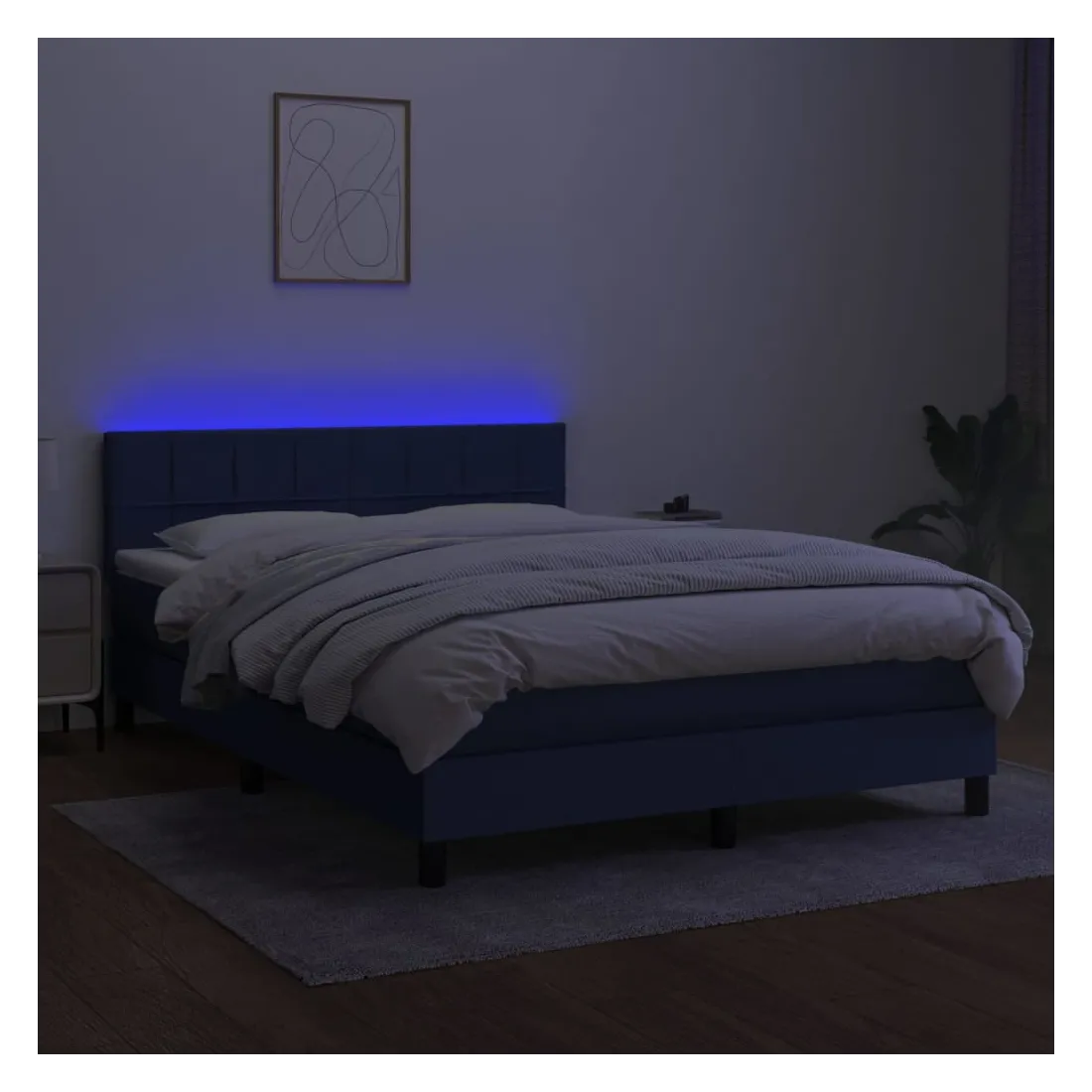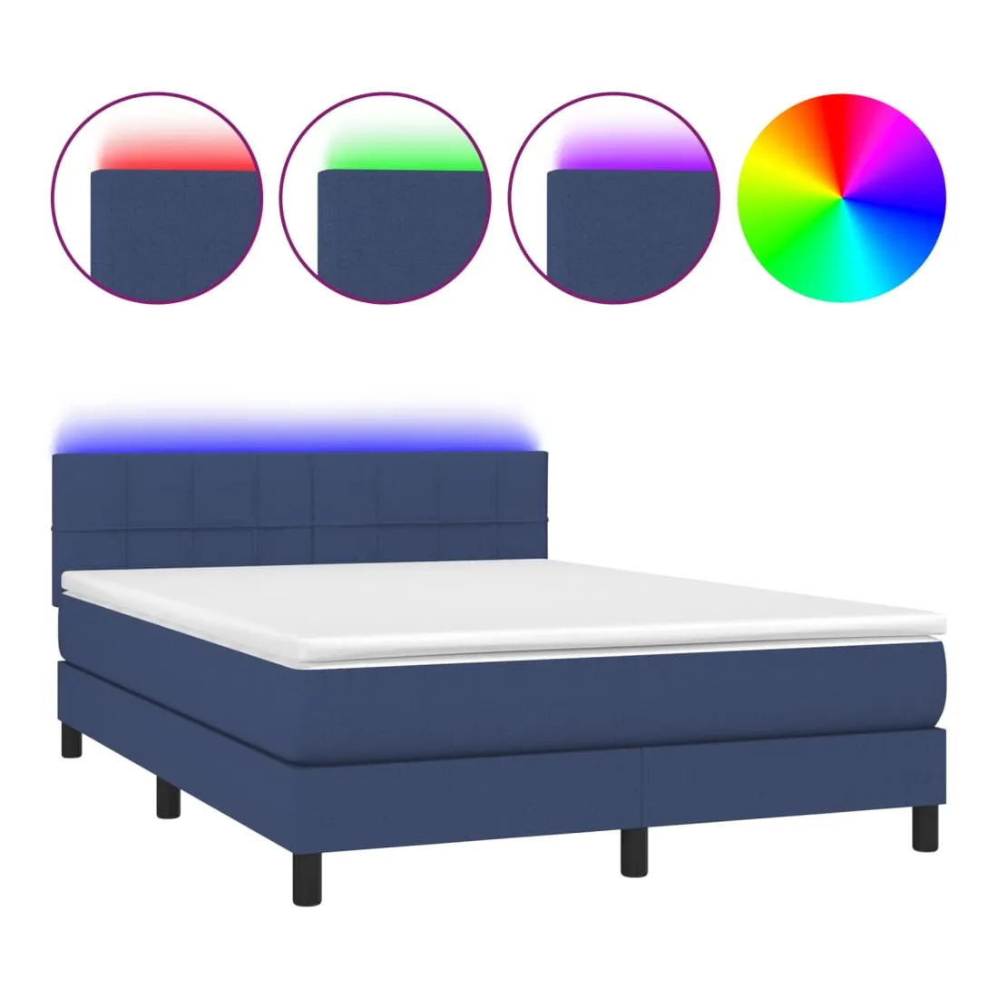 Utilisez ce sommier tapissier avec matelas et LED pour profiter d'un sommeil réparateur ! C'est le point central de votre chambre à coucher. Tissu durable : le tissu présente un aspect simple et épuré, et il est respirant et durable.Tête de lit pratique : la tête de lit est réglable en hauteur selon vos préférences. La tête de lit vous offre un excellent soutien du dos lorsque vous êtes assis dans votre lit pour lire ou regarder la télévision.Bande LED colorée : apportez de l'éclairage dans l'obscurité avec des lumières LED colorées !Matelas à ressorts ensachés : le ressort ensaché individuel intégré est connu pour sa très haute qualité tout en assurant un haut niveau de durabilité et d'adaptabilité. Il peut absorber efficacement le bruit et les chocs causés par les sauts et les rotations.Protège-matelas doux pour la peau : le protège-matelas est recouvert d'un tissu résistant et doux pour la peau, ce qui le rend souple et confortable. Remarque :Pour des raisons d'hygiène, le matelas ne peut pas être retourné si l'emballage est retiré ou ouvert.Chaque produit est livré avec un manuel de montage dans la boîte pour un montage facile.Seule la partie avec un symbole de ciseaux peut être coupée et seule la partie avec l'USB continuera à fonctionner comme avant.Ce produit est doté d'un connecteur USB, mais la source d'alimentation certifiée de USB 5V n'est pas incluse.