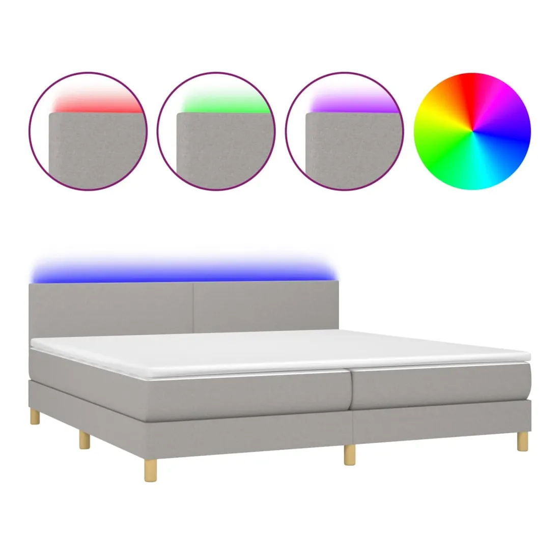 Utilisez ce sommier tapissier avec matelas et LED pour profiter d'un sommeil réparateur ! C'est le point central de votre chambre à coucher. Tissu durable : le tissu présente un aspect simple et épuré, et il est respirant et durable.Tête de lit pratique : la tête de lit est réglable en hauteur selon vos préférences. La tête de lit vous offre un excellent soutien du dos lorsque vous êtes assis dans votre lit pour lire ou regarder la télévision.Bande LED colorée : apportez de l'éclairage dans l'obscurité avec des lumières LED colorées !Matelas à ressorts ensachés : le ressort ensaché individuel intégré est connu pour sa très haute qualité tout en assurant un haut niveau de durabilité et d'adaptabilité. Il peut absorber efficacement le bruit et les chocs causés par les sauts et les rotations.Protège-matelas doux pour la peau : le protège-matelas est recouvert d'un tissu résistant et doux pour la peau, ce qui le rend souple et confortable. Remarque :Pour des raisons d'hygiène, le matelas ne peut pas être retourné si l'emballage est retiré ou ouvert.Chaque produit est livré avec un manuel de montage dans la boîte pour un montage facile.Seule la partie avec un symbole de ciseaux peut être coupée et seule la partie avec l'USB continuera à fonctionner comme avant.Ce produit est doté d'un connecteur USB, mais la source d'alimentation certifiée de USB 5V n'est pas incluse.