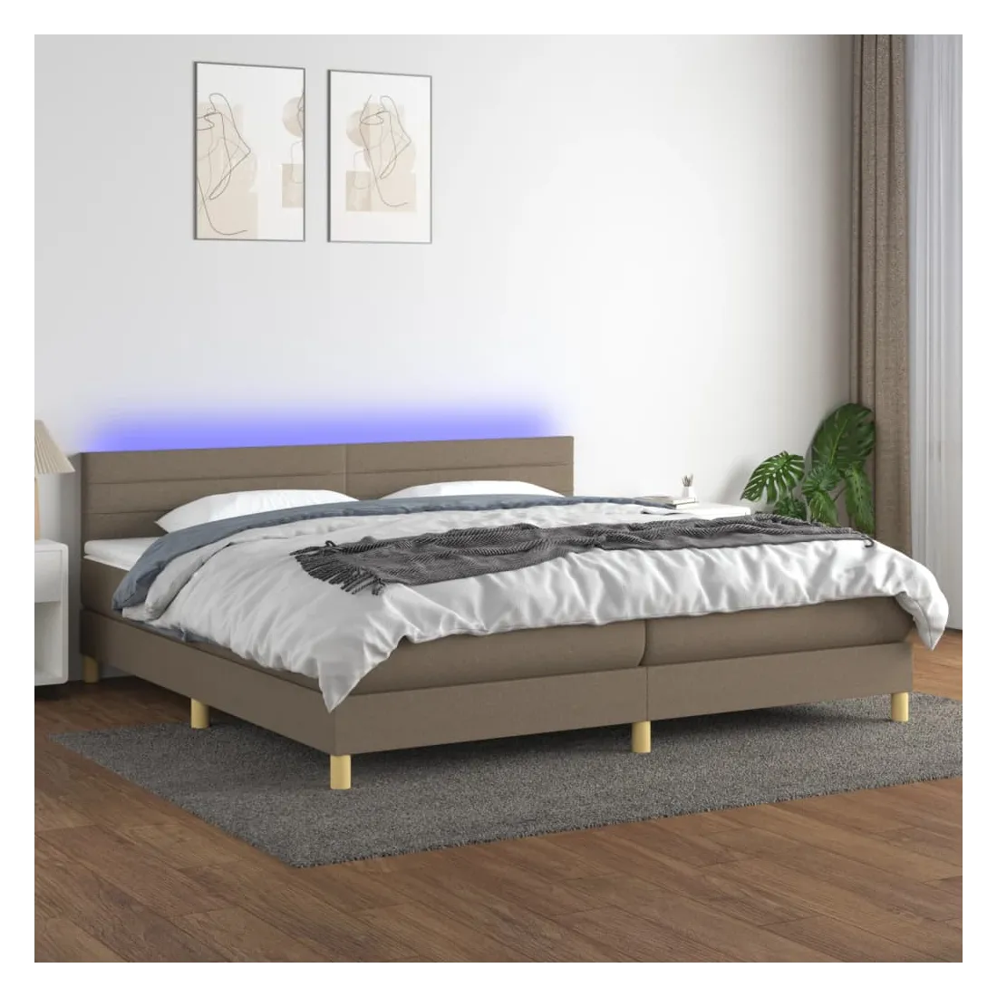 Sommier à lattes de lit et matelas et LED Taupe 200x200cm Tissu