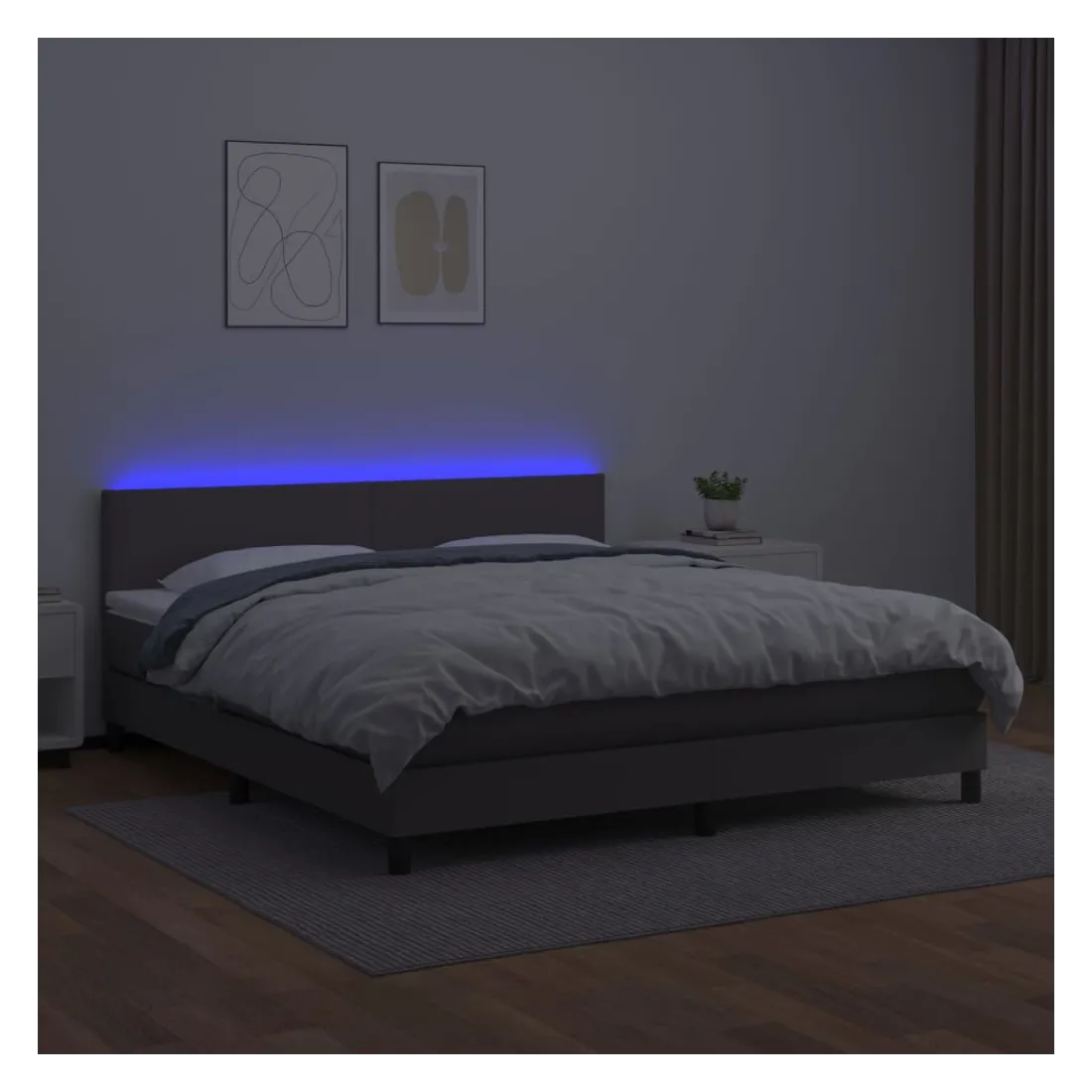 Utilisez ce sommier tapissier avec matelas et LED pour profiter d'un sommeil réparateur ! C'est le point central de votre chambre à coucher. Similicuir durable : le similicuir de qualité supérieure est un matériau très durable. Il est résistant aux taches, ce qui le rend facile à nettoyer avec un chiffon humide. La surface lisse donne également un aspect luxueux et la beauté du cuir véritable.Tête de lit pratique : la tête de lit est réglable en hauteur selon vos préférences. La tête de lit vous offre un excellent soutien du dos lorsque vous êtes assis dans votre lit pour lire ou regarder la télévision.Bande LED colorée : apportez de l'éclairage dans l'obscurité avec des lumières LED colorées !Matelas à ressorts ensachés : le ressort ensaché individuel intégré est connu pour sa très haute qualité tout en assurant un haut niveau de durabilité et d'adaptabilité. Il peut absorber efficacement le bruit et les chocs causés par les sauts et les rotations.Protège-matelas doux pour la peau : le protège-matelas est recouvert d'un tissu résistant et doux pour la peau, ce qui le rend souple et confortable. Remarque :Pour des raisons d'hygiène, le matelas ne peut pas être retourné si l'emballage est retiré ou ouvert.Chaque produit est livré avec un manuel de montage dans la boîte pour un montage facile.Seule la partie avec un symbole de ciseaux peut être coupée et seule la partie avec l'USB continuera à fonctionner comme avant.Ce produit est doté d'un connecteur USB, mais la source d'alimentation certifiée de USB 5V n'est pas incluse.