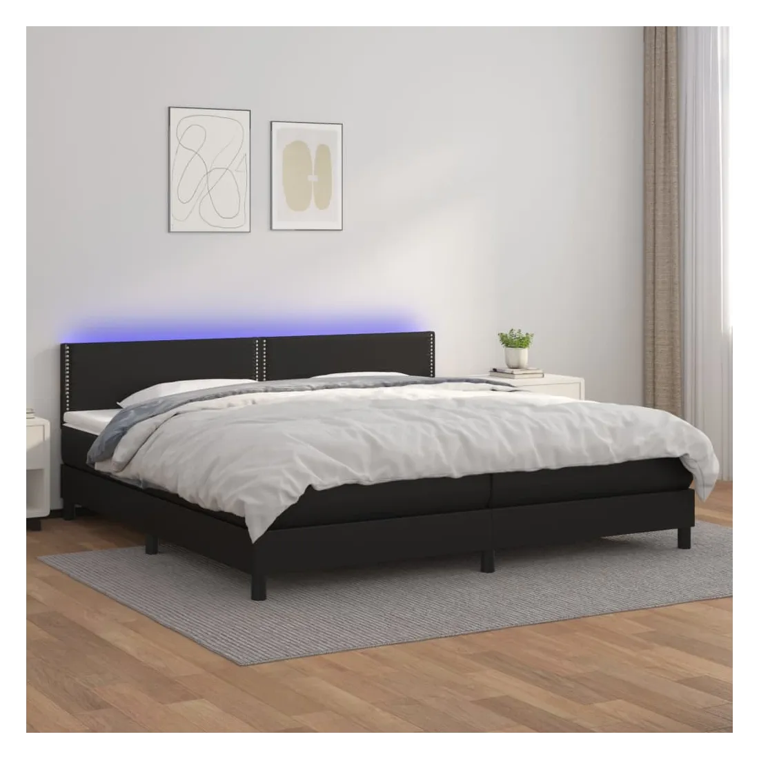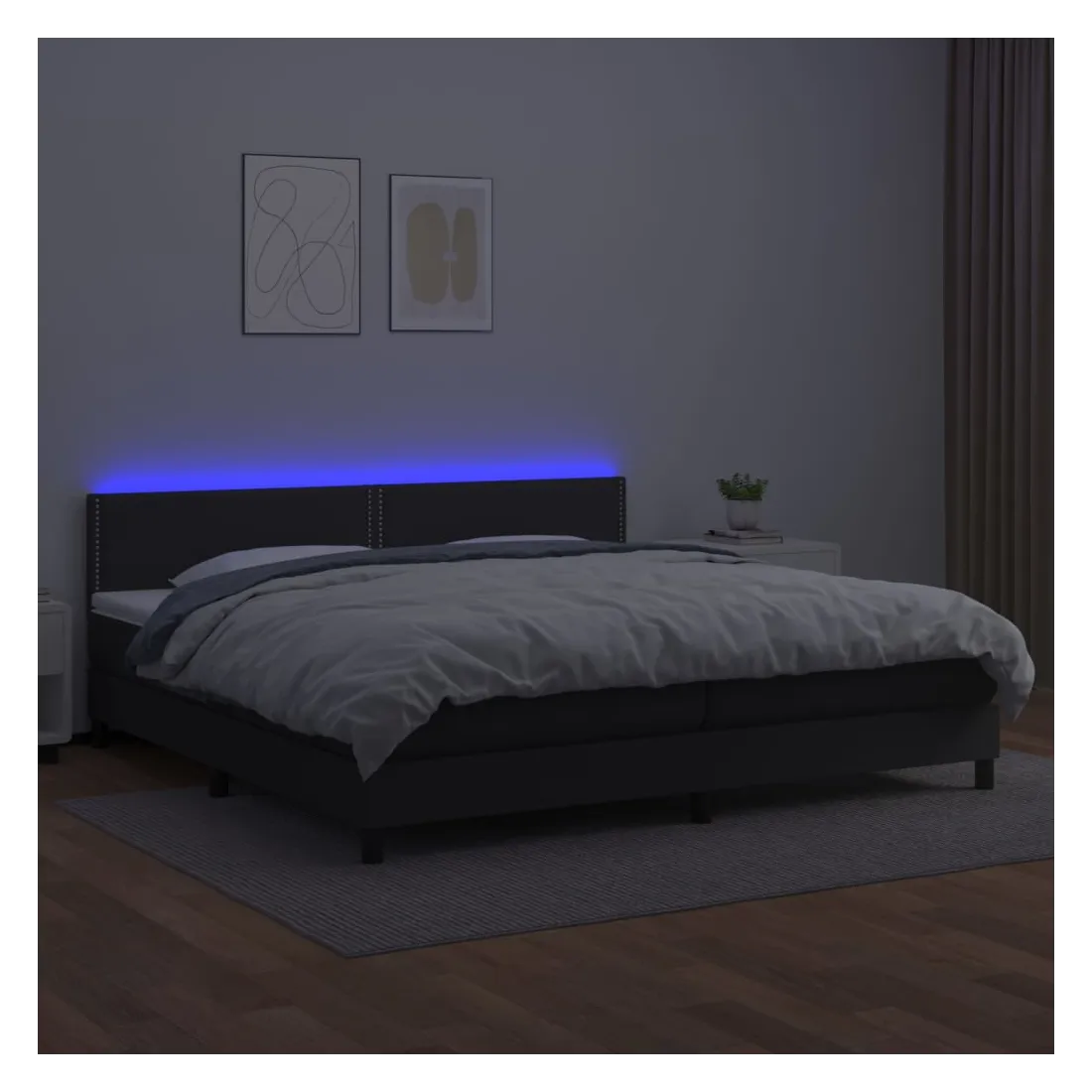 Utilisez ce sommier tapissier avec matelas et LED pour profiter d'un sommeil réparateur ! C'est le point central de votre chambre à coucher. Similicuir durable : le similicuir de qualité supérieure est un matériau très durable. Il est résistant aux taches, ce qui le rend facile à nettoyer avec un chiffon humide. La surface lisse donne également un aspect luxueux et la beauté du cuir véritable.Tête de lit pratique : la tête de lit est réglable en hauteur selon vos préférences. La tête de lit vous offre un excellent soutien du dos lorsque vous êtes assis dans votre lit pour lire ou regarder la télévision.Bande LED colorée : apportez de l'éclairage dans l'obscurité avec des lumières LED colorées !Matelas à ressorts ensachés : le ressort ensaché individuel intégré est connu pour sa très haute qualité tout en assurant un haut niveau de durabilité et d'adaptabilité. Il peut absorber efficacement le bruit et les chocs causés par les sauts et les rotations.Protège-matelas doux pour la peau : le protège-matelas est recouvert d'un tissu résistant et doux pour la peau, ce qui le rend souple et confortable. Remarque :Pour des raisons d'hygiène, le matelas ne peut pas être retourné si l'emballage est retiré ou ouvert.Chaque produit est livré avec un manuel de montage dans la boîte pour un montage facile.Seule la partie avec un symbole de ciseaux peut être coupée et seule la partie avec l'USB continuera à fonctionner comme avant.Ce produit est doté d'un connecteur USB, mais la source d'alimentation certifiée de USB 5V n'est pas incluse.