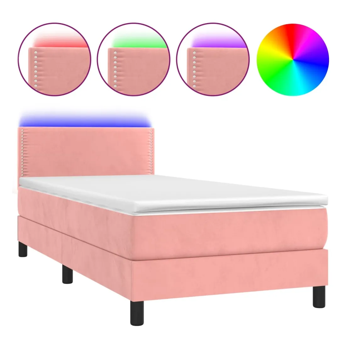 Sommier à lattes de lit avec matelas LED Rose 100x200cm Velours